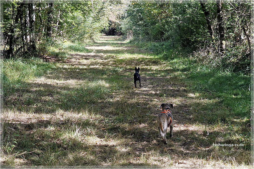 Unser Wanderziel erreichen wir heute nicht. Friedbert hat eine Strecke rausgesucht, die auf Pfaden oben auf dem Berg verlaufen soll. Der Haken ist, dass wir erst gar nicht dorthin kommen, weil auf der Strecke Bauarbeiten sind und diese gesperrt ist. Wir fahren an eine andere Stelle, wo die Wege aber fast ausschließlich geschottert sind. So kommen wir nur auf etwa zwei Kilometer. Manchmal ist es frustrierend, wenn man wandern will und einen Hund dabei hat, der laufen kann und will, aber eben nicht auf Teer oder Schotter. Wieviele Wege geschottert sind, ist uns früher nie aufgefallen. Jetzt haben wir das Gefühl, dass es fast nur solche Wege gibt und das, obwohl die oft als "naturbelassen" bezeichnet werden. Naja, wir machen das Beste draus und dann wird eben mal weniger gelaufen. Hauptsache unser Bub ist dabei. |
