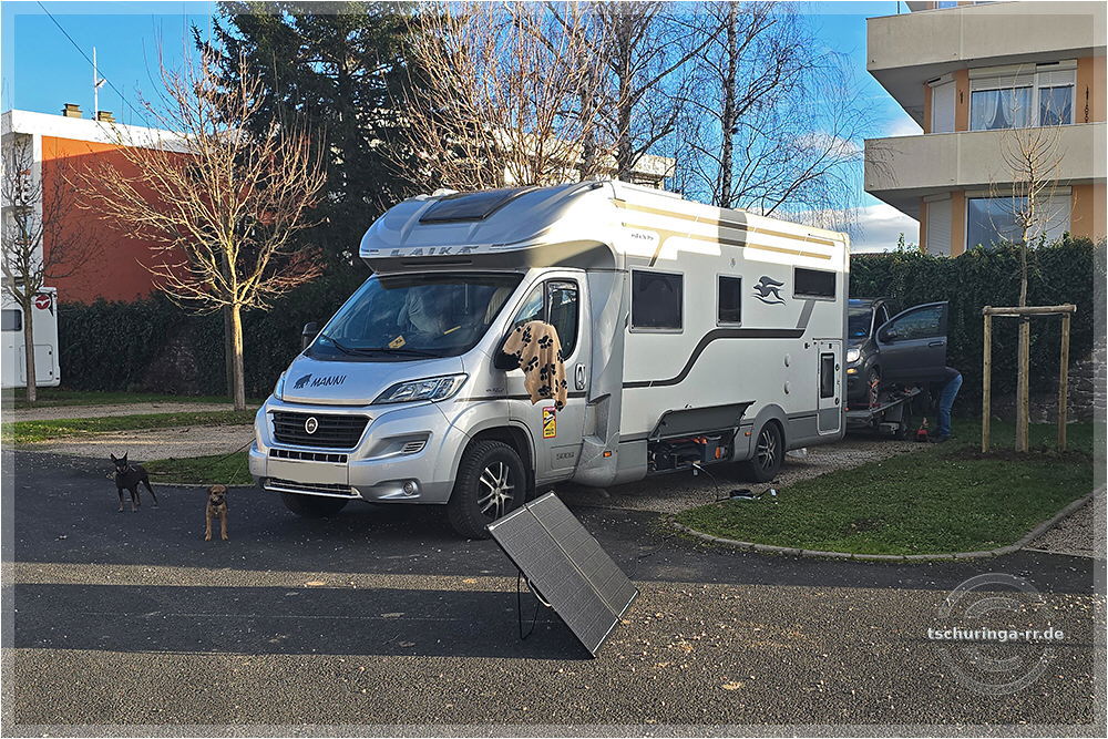 Zweieinhalb Wochen in Katzenbach reichen uns. Alles ist gewaschen. Arztbesuche sind erledigt. Der Panda braucht vorne links eine neue Feder. Die ist einfach weggebrochen und klappert irgendwo im Radkasten rum. Ist jetzt schon die zweite. Die rechte ist nach fünf Jahren gebrochen. Die Lieferung des zweiten Solarkoffers hat sich um eine Woche verzögert. Der Black Week sei dank. Zu allem Überfluss leuchtet dann auch noch die gelbe Motorleuchte vom Ducato. Friedbert fährt am Freitag erst nach Siegen, um den Solarkoffer abzuholen und den Regler einbauen zu lassen. Anschließend geht es nach Altenkirchen zu Fiat Professional. Dort wird festgestellt, dass ein Kabel vom Turbolader defekt ist. Das ist glücklicherweise vorrätig und so können wir doch heute starten. Irgendwie ist immer irgendwo irgendwas dran. Aber gut, wenn das zuhause und nicht irgendwo im Ausland passiert. |