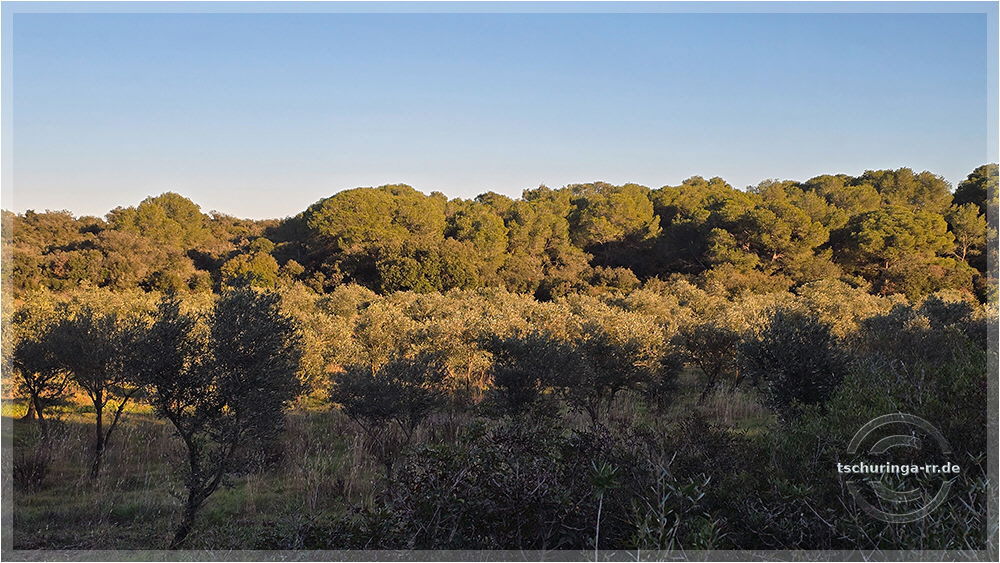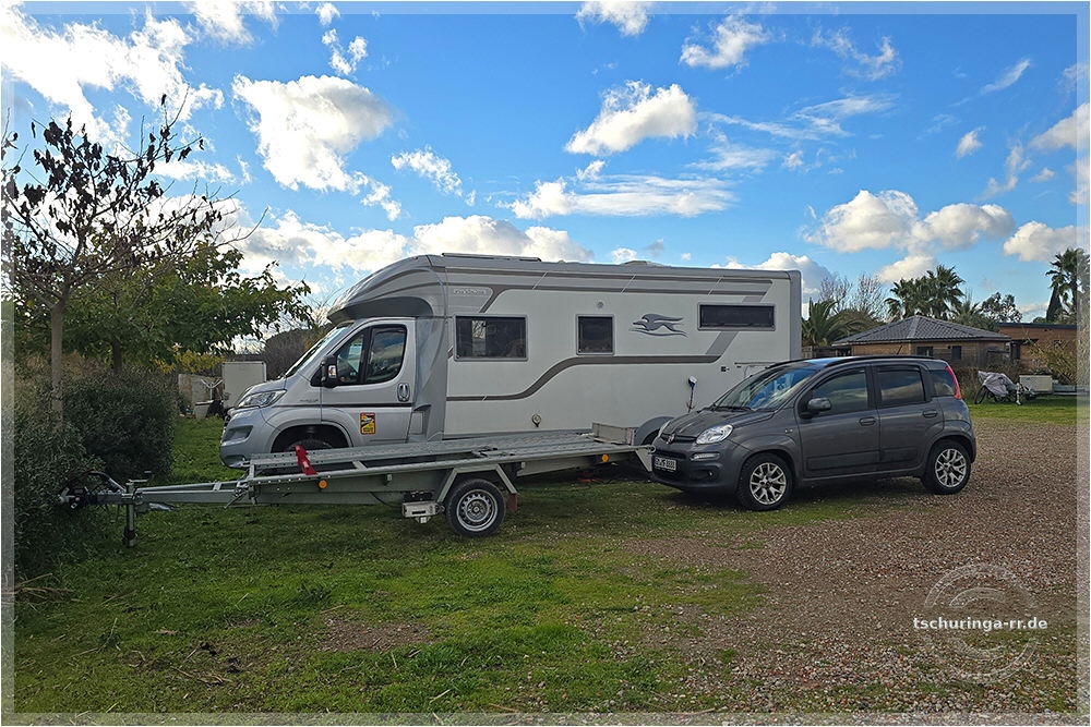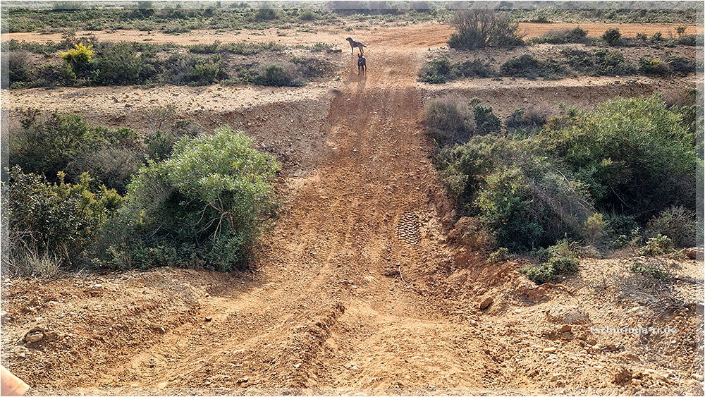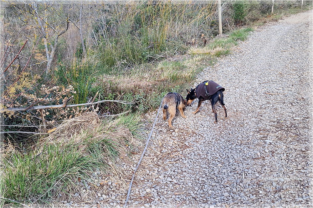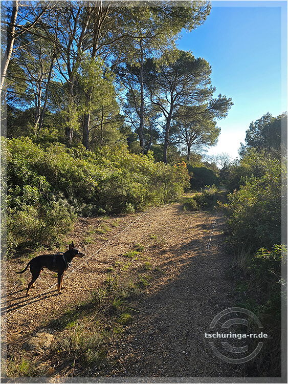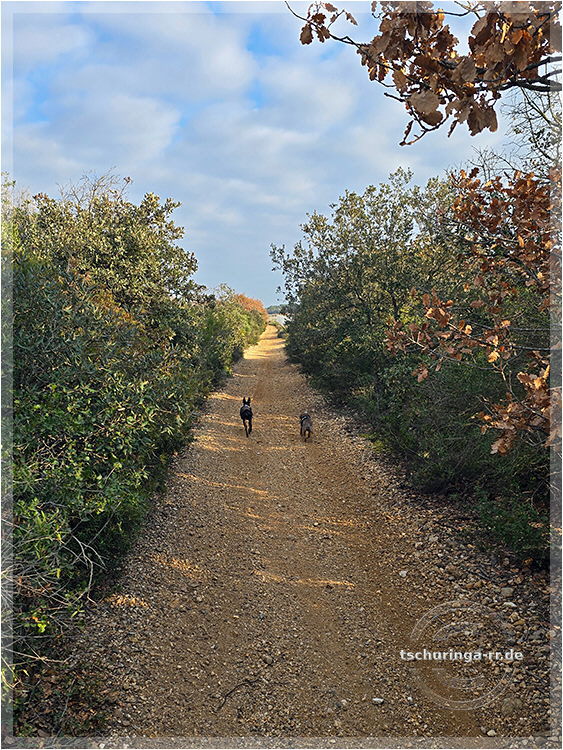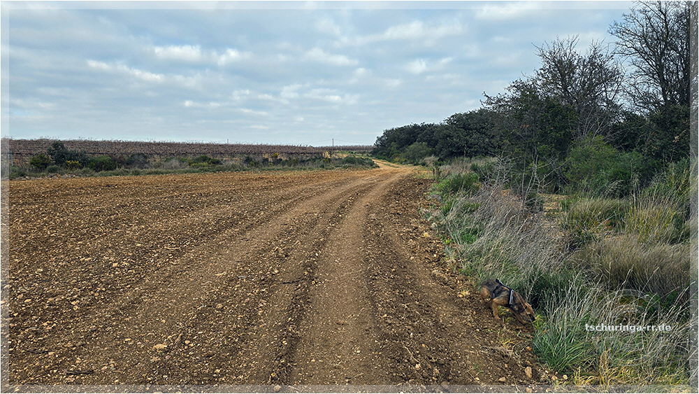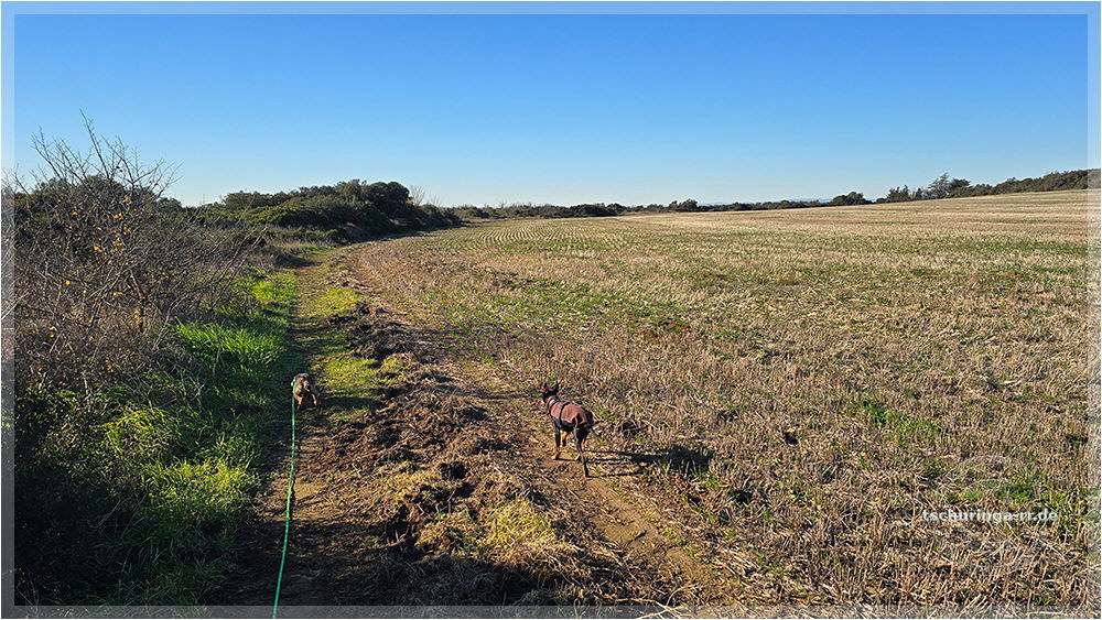 Den Süden haben wir heute erreicht. Ab jetzt geht es langsamer weiter. Auf dem Stellplatz in Vias wollen wir einige Tage bleiben. Wie lange wird sich finden. Nachdem wir den Panda abgeladen haben und alles weitgehend platzsparend untergebracht ist, geht es mit den Hunden los. Die vielen Wege, die Komoot zeigt, sind allerdings nicht wirklich vorhanden. Entweder gar nicht oder gesperrt. Egal. Wir laufen 2,5 km in eine Richtung und drehen dann wieder um. |