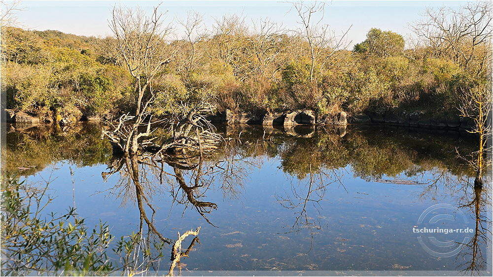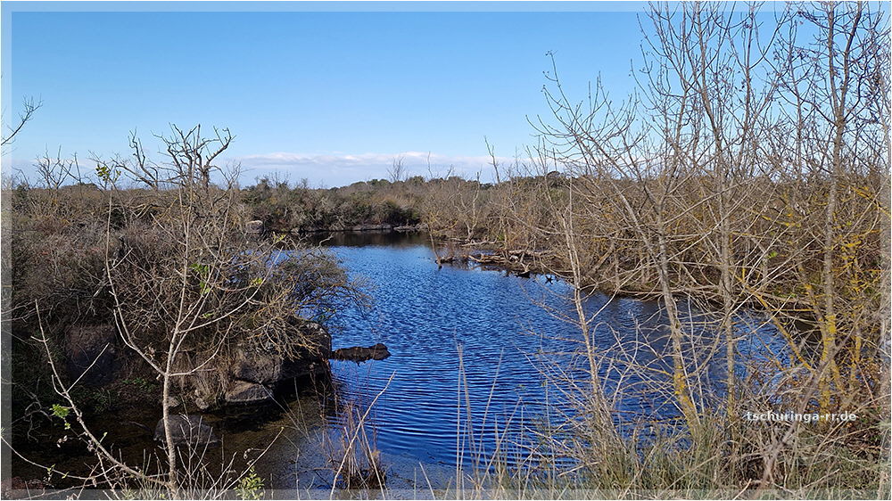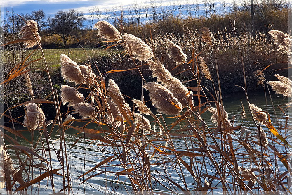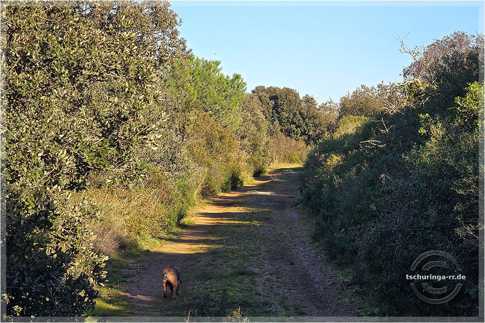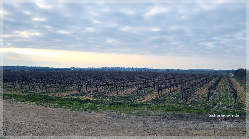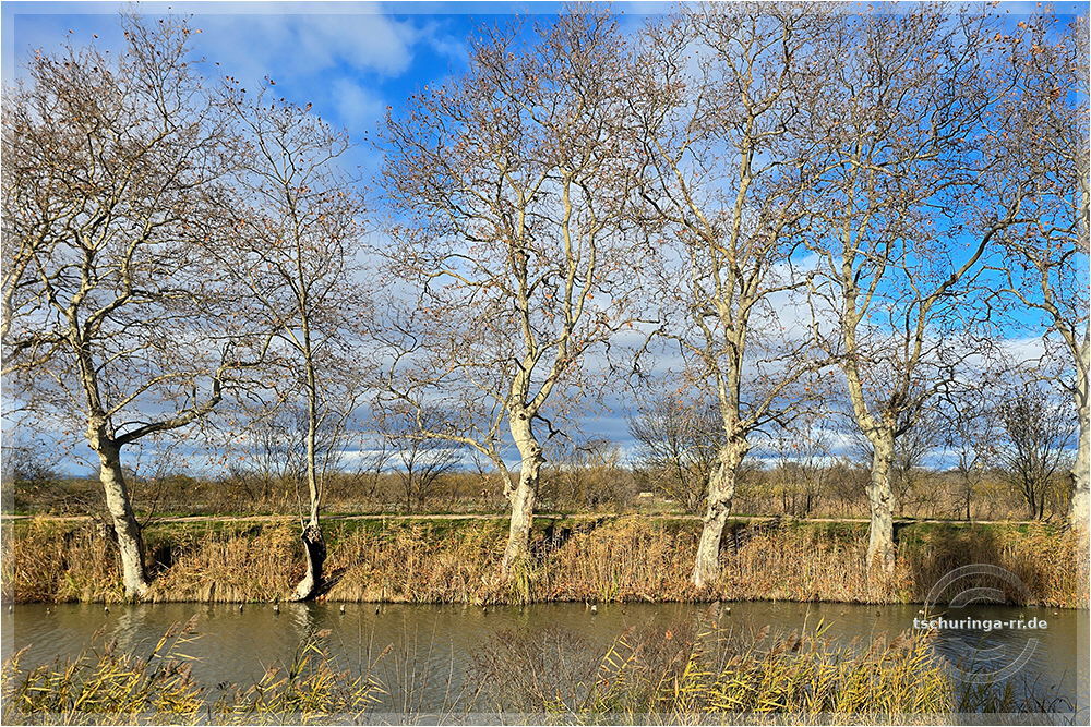 Knapp neun Kilometer ab Stellplatz wandern wir heute. Manchmal ist es etwas schwierig mit den Wegen. Nicht alle, die Komoot anzeigt, sind auch wirklich begehbar, wenn sie denn überhaupt vorhanden sind. Da steht man auch schon mal vor einem Privatgrundstück mit großem Tor, das mit einem ebenfalls großen Schloss versehen ist. Ein Stück geht es wieder am Canal du Midi entlang. Das Wetter ist herrlich. Lange Zeit laufen wir im T-Shirt, weil es bei 14° im Schatten in der Sonne richtig schön warm ist. |