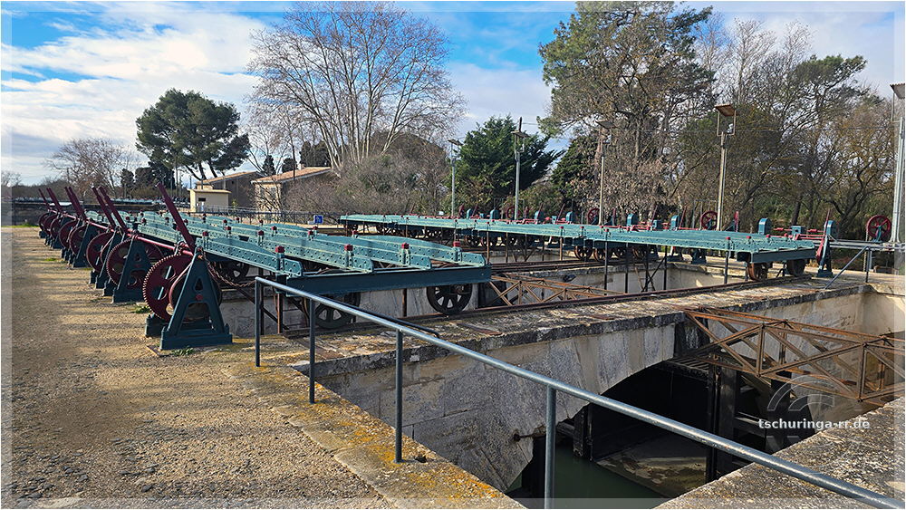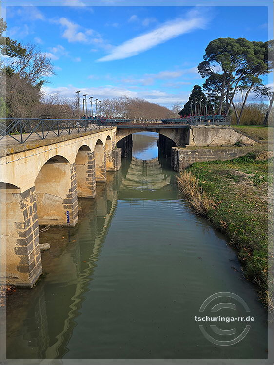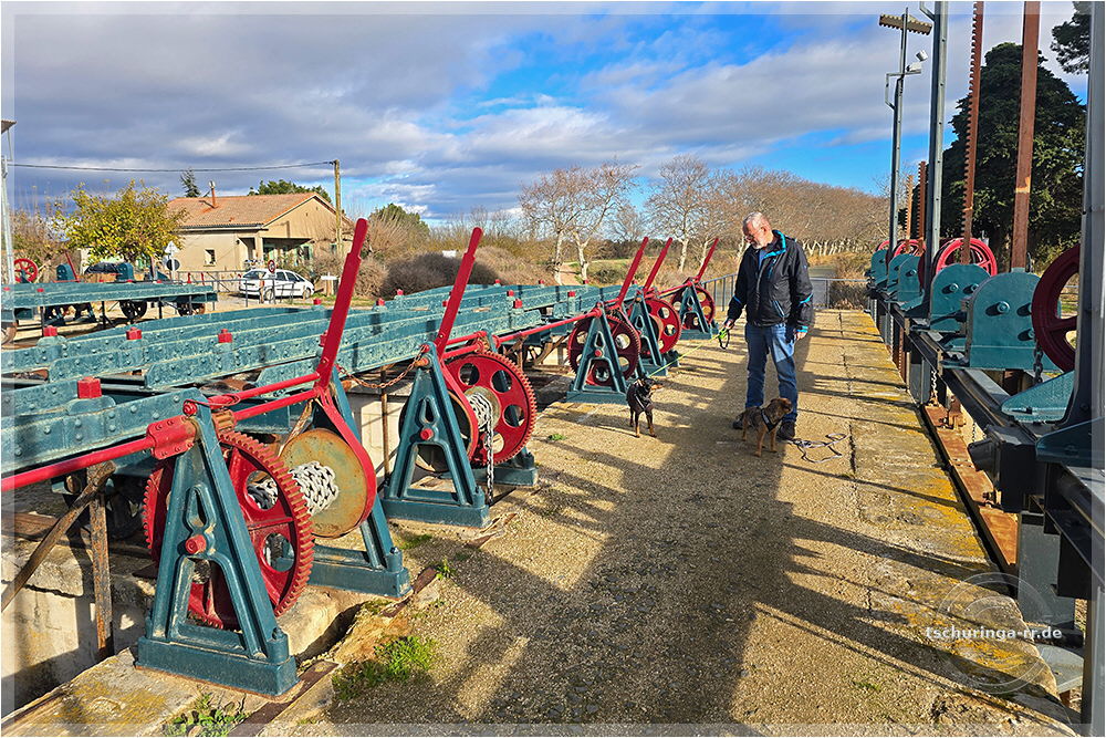 Den Vormittag vertrödeln wir im Wohnmobil. Nachmittags fahren wir zum Canal du Midi, wo wir uns den Ouvrages du Libron, den Hochwasserdruchlass des Libron, ansehen. Wir machen einen strammen Spaziergang von 7 km mit 4,85 km/h Durchschnittsgeschwindigkeit. Auf dem Rückweg statten wir dem Intermaché Vias einen Besuch ab. |