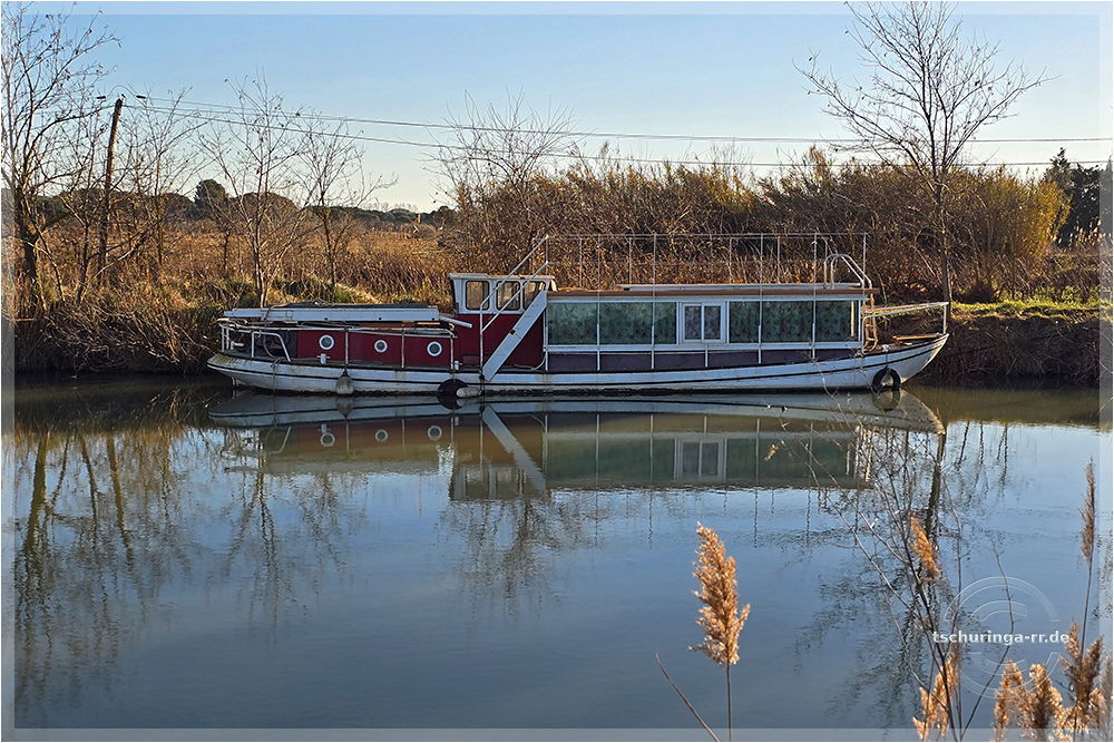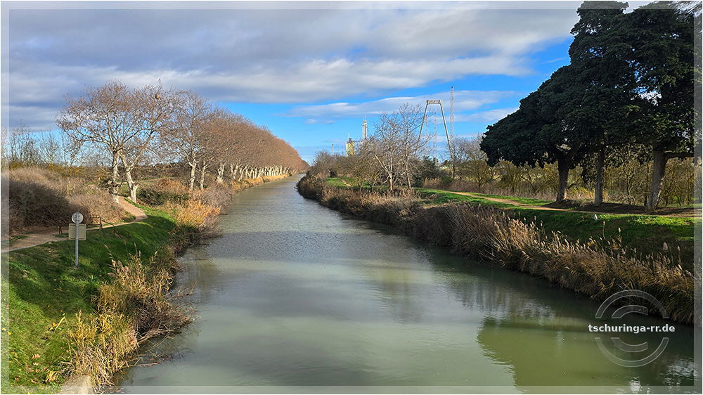Heute steht erstmal die Aktion "Pömpel und Ausbeulen" auf dem Plan. Das Auto steht so, dass die Sonne die Tür gut erwärmen kann. Das Ganze ist schwieriger als gedacht. Pömpel ansetzen, ziehen und alles ist wieder wie vorher, klappt nicht. Es braucht schon ein paar Versuche bis zumindest der größte Schaden beseitigt ist. Ganz bekommt Friedbert die Dellen nicht raus, aber die Gummilippe liegt wieder ordentlich an der Fensterscheibe an. Vorher stand die über einen Zentimeter ab und hätte allem Wasser von oben den direkten Weg in die Tür frei gegeben. Übrig geblieben sind ein paar kleinere Schönheitsfehler. Da lassen wir zuhause den Fachman drauf schauen, ob man die noch beseitigen kann. Derzeit hat der Panda halt eine persönliche Note und wer hat schon ein Auto mit "Arschbomben-Design"? Anschließend kaufen wir in Vias für das Mittagessen ein und danach wandern wir 10 km die Runde am Canal du Midi. Diesmal die Runde in entgegen gesetzter Richtung. |
