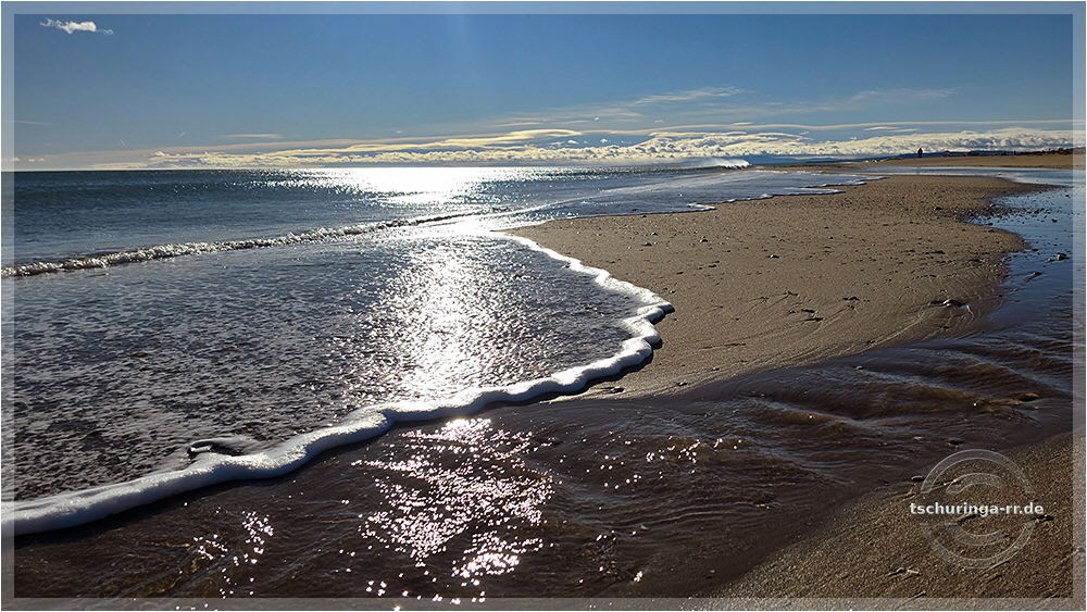 Heute schaffen wir endlich unsere Strandwanderung, drei Kilometer hin und natürlich auch drei wieder zurück. Abends gibt es dann gemütlich Raclette im Wohnmobil. |