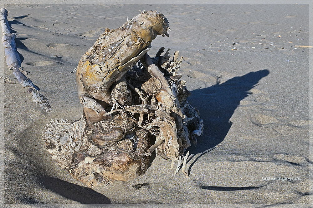 Treibgut gefunden. Das Holzstück haben wir mitgenommen. |