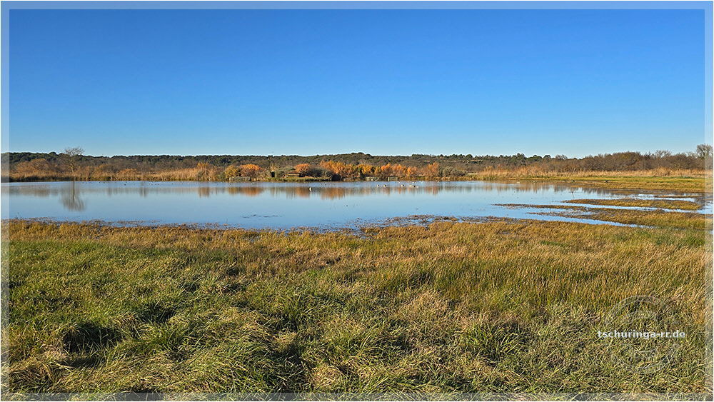 Nach Mittag starten wir zu einer gemütlichen 6,5 Kilometerrunde. Als Ausgleich für die wenigen Kilometer gibt es Kaffee und Spritzgebäck. Es ist immer noch herrlich sonnig. Kaum eine Wölkchen am Himmel, aber mit nur 8° recht kühl. Nachts haben wir schon seit einigen Tagen Frost. |