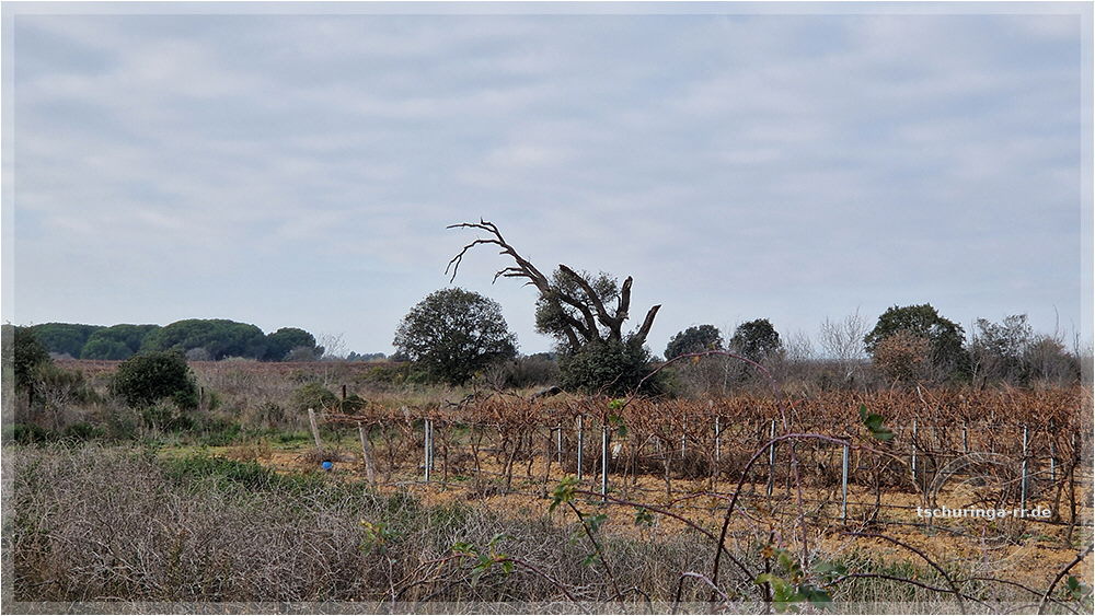 Heute bekommt das Wohnmobil mal wieder Auslauf. Wir müssen dringend Gas tanken. In Agde gibt es eine Gastankstelle, wo wir unsere Vorräte incl. Diesel wieder auffüllen. Beim Lidl werden noch schnell ein paar Dinge für das silvesterliche Racletteessen eingekauft und dann geht es zurück zum Stellplatz. Nach dem Mittagessen starten wir zu einer neun Kilometer Wanderung auf bekannten und auch vielen unbekannten Wegen und auch auf gar keinen Wegen. Ein Hofhund, der nicht wirklich freundlich wirkt, lässt uns umdrehen. Wir gehen entlang eines Weinfeldes und hoffen auf die Straße zu kommen. Das klappt aber mal gar nicht. Es geht durch Gestrüpp und Disteln ein ganzes Stück zurück, bis wir dann endlich doch die Straße erreichen. |