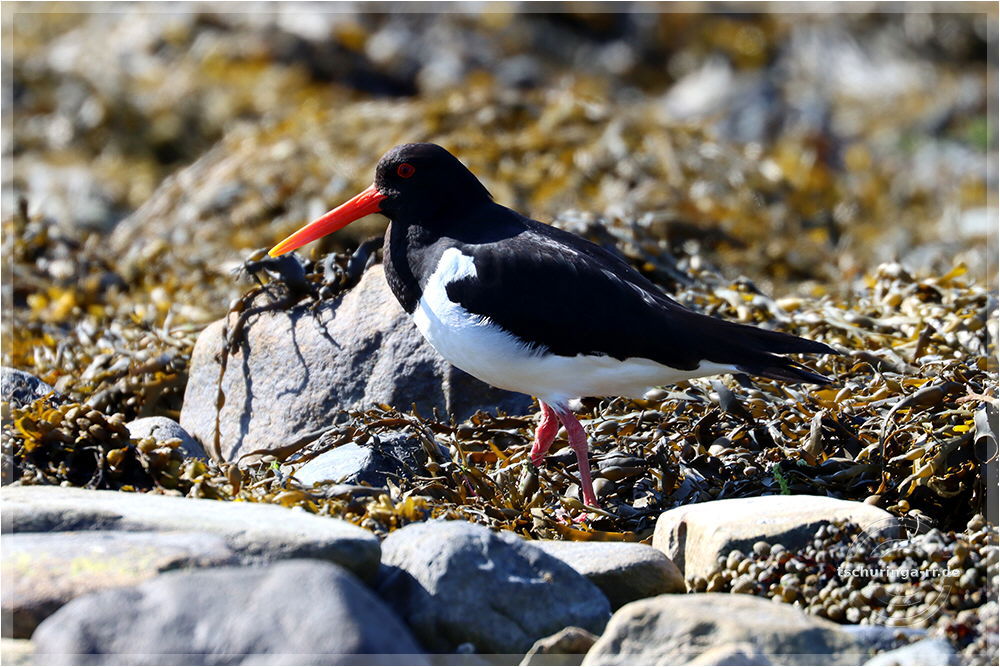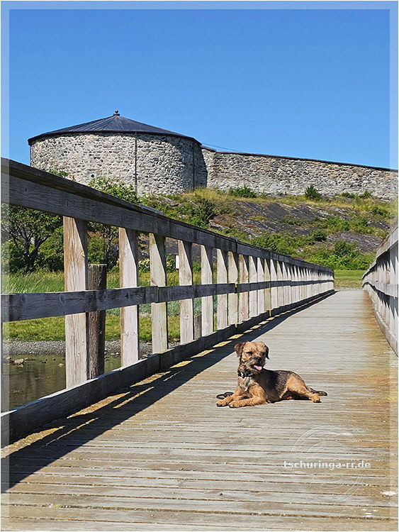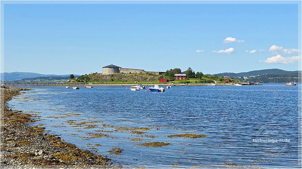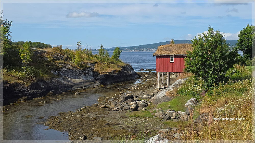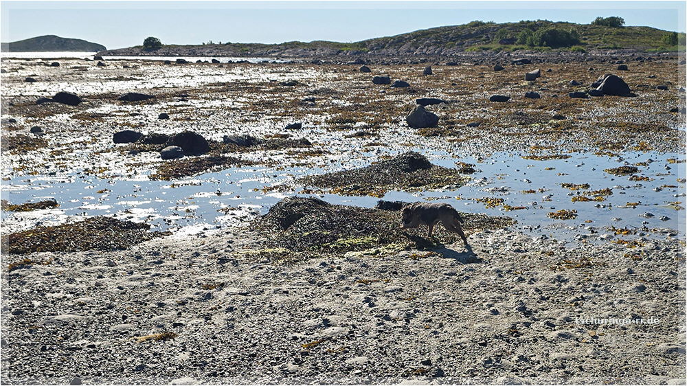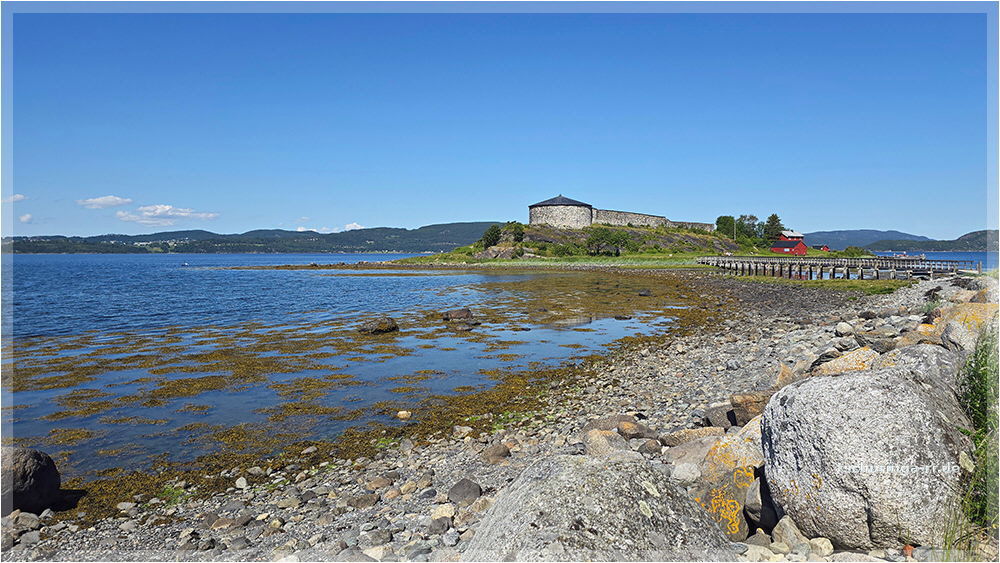 Wir starten nach Steinvikholmen, einer spätmittelalterlichen Insel- und erzbischhöflichen Kirchenburg. Auf dem Parkplatz kann man für 200 NOK übernachten. Es gibt allerdings nichts, außer der Möglichkeit zum Parken. Egal, es ist so schönes Wetter und wir stehen direkt an einem Ausläufer des Trondheimfjords. Was will man mehr? Wir laufen einmal um die Burganlage und anschließend entlang des Fjords. Die Burganlage besichtigen wir allerdings nicht. Den Nachmittag verbringen wir vor dem Womo in der Sonne mit Blick auf den Fjord. Während wir vor dem Wohnmobil sitzen, hören wir immer wieder lautes Geschrei von Seevögeln. Als ich mit Una eine kleine Runde drehe, sehe ich sie, die Austernfischer. Una wird gegen die Canon umgetauscht und ich geh noch mal los. Abends wird der neue Grill getestet. Um 20:30 Uhr starten wir zu einer zweiten Runde über die Insel. So langsam kommt das Wasser näher und die Steine unterhalb der Wohnmobile verschwinden zunehmend in der Flut. |
