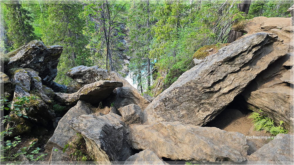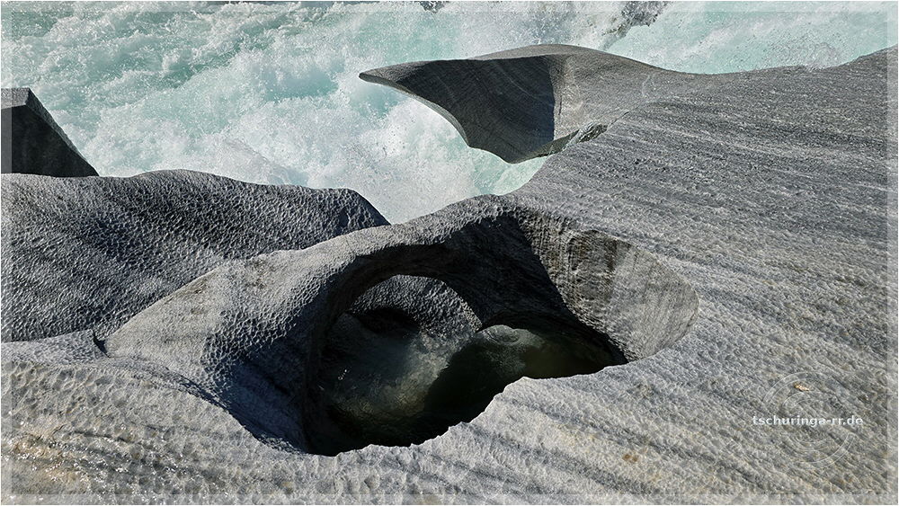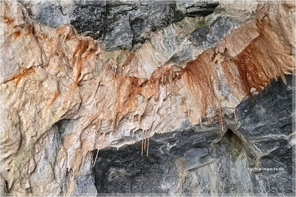 | Im einheitlichen Grau der Felsen gibt es immer wieder mal einen Farbklecks | ||