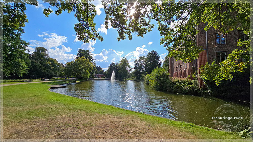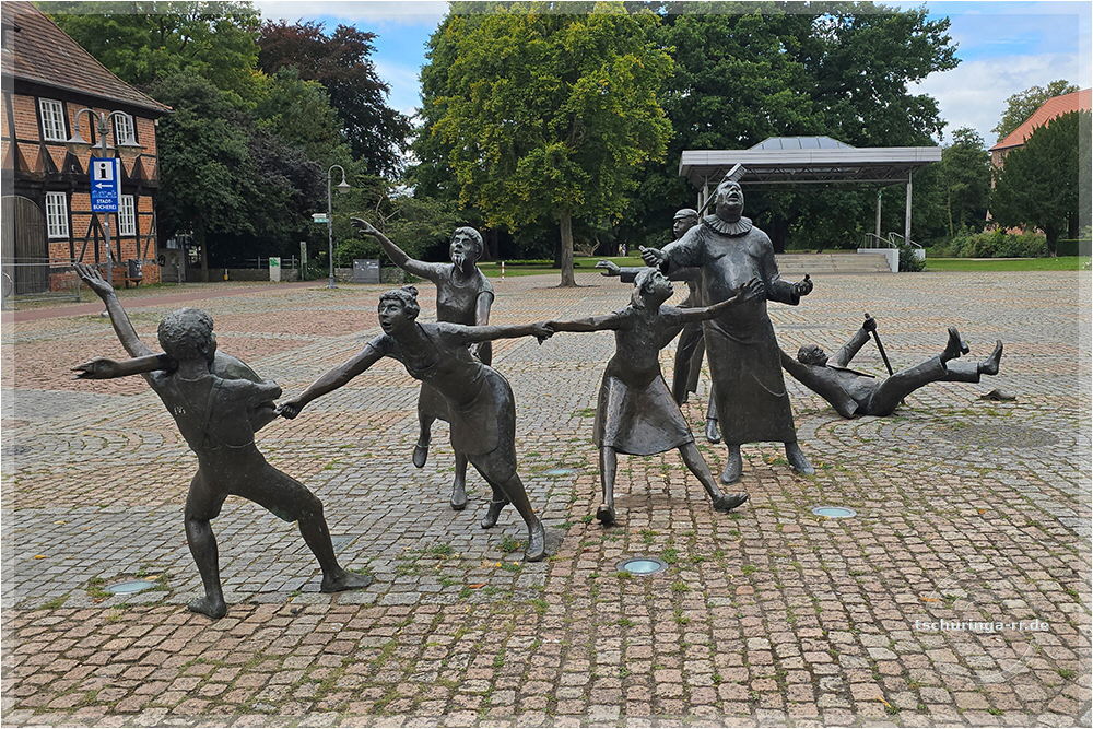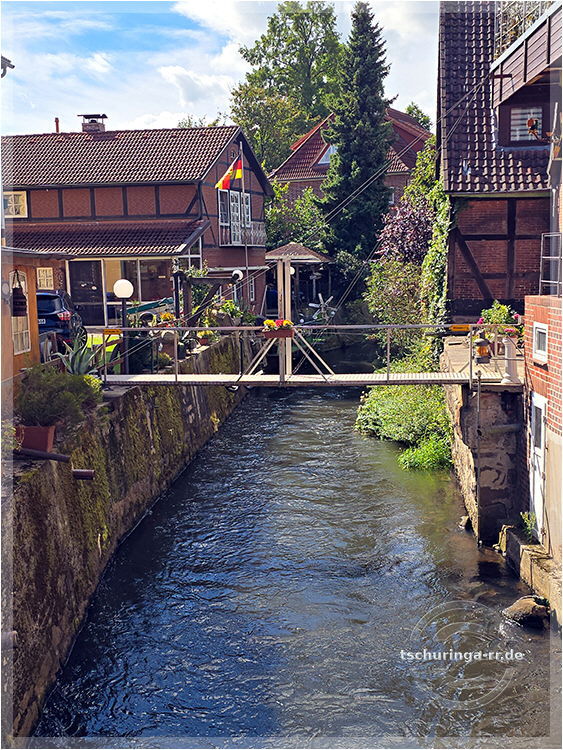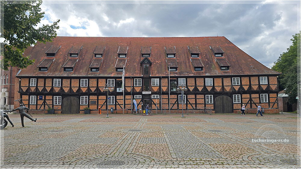 Gegen 10:00 Uhr treffen wir beim Karls Erlebnis-Dorf in Warnsdorf ein. Ich lüfte kurz die Hunde und dann gehen wir shoppen und futtern uns durch die Probierstände. Erdbeer- und Rhabarberkuchen sowie ein Stück Bienenstich finden den Weg in unseren Einkaufskorb. Den Kuchen lassen wir uns dann in Winsen (Luhe) schmecken. Während unseres Kaffeetrinkens regnet es leicht. Der hört aber wieder auf und wir starten zu einem Spaziergang entlang der Luhe, durch den Eckermann-Park und die Gärtner-Fantasien. Hier war 2006 die Landesgartenschau. Wir umrunden das Schloss Winsen, in dem heute das Amtsgericht angesiedelt ist, und gehen danach wieder zurück zum Stellplatz. |