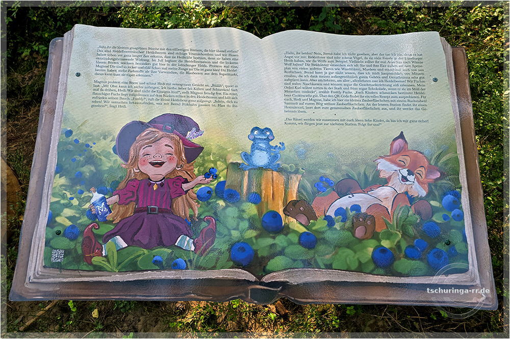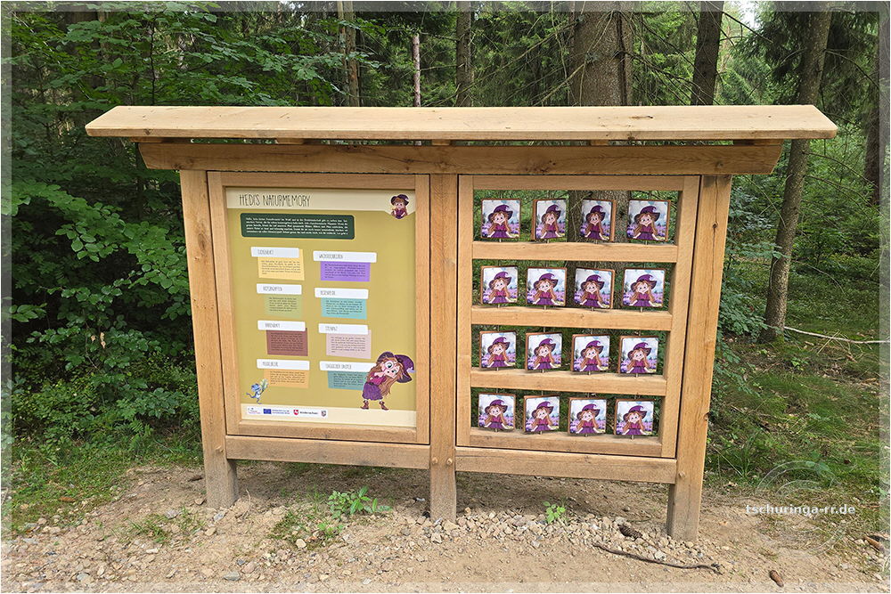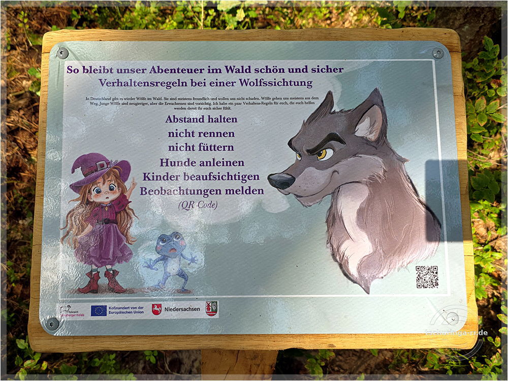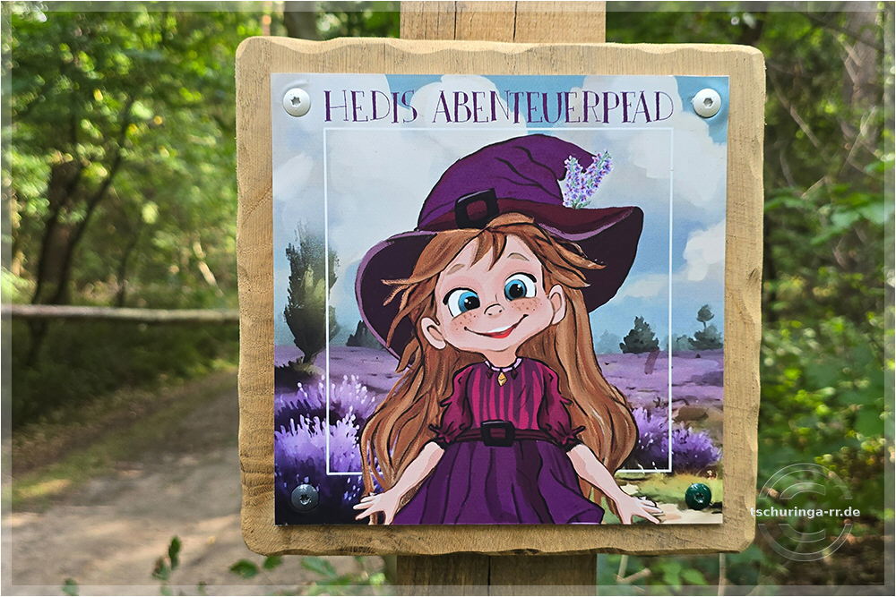 Nach einem kurzen Einkauf beim Lidl fahren wir nach Lüneburg zur Firma Wattstunde. Ins Wohnmobil hält heute eine Delta 3 Plus Einzug. Endziel ist ein Wanderparkplatz bei Hanstedt zu der Heideschleife Töps. Nach dem Mittagessen starten wir auf dem "Hedis Abenteuerpfad". Erst dieses Jahr wurde er angelegt und ist für Kinder eine tolle Sache. Die kleine Heidehexe Hedi erzählt auf 10 bebilderten Tafeln von ihrer Suche nach Bernd Birkhahn. Zusammen mit Magnus Moorfrosch und der Hilfe weiterer tierischer Freunde, die ihr in Form eines Rätsels Hinweise geben, findet sie Bernd Birkhahn schließlich wieder. Spielstationen sorgen auf dem 4,2 Kilometer langen Rundweg für Abwechslung. |