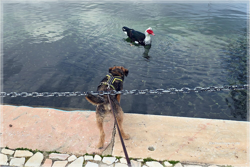 | Die beiden sind dann doch froh, dass sie wieder Boden unter den Pfoten haben. |