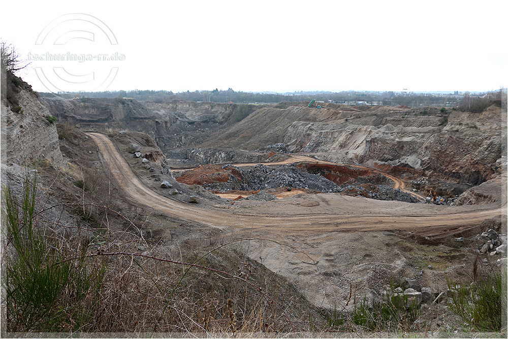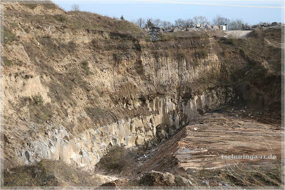| Auf dem Rückweg werfen wir einige Blicke in den Steinbruch, in dem Basalt abgebaut wird. | ||
