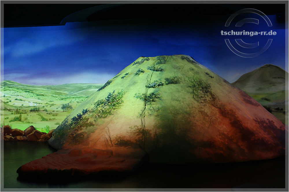 | Vulkankegel im Filmraum des Museums - was Lichteffekte doch ausmachen.... | ||