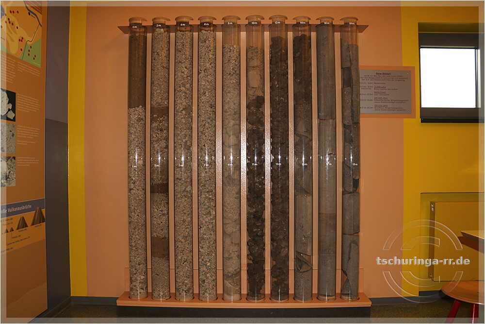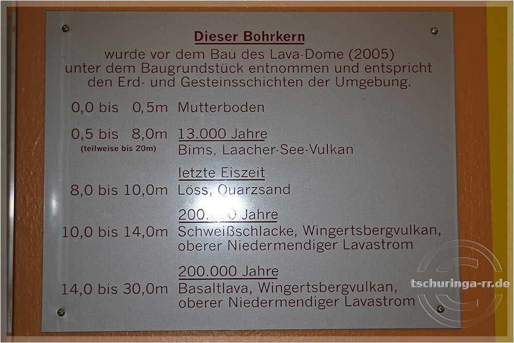 | Bohrkern aus dem Baugrundstück des Lava-Dome - Beschreibung s. Bild unten | ||