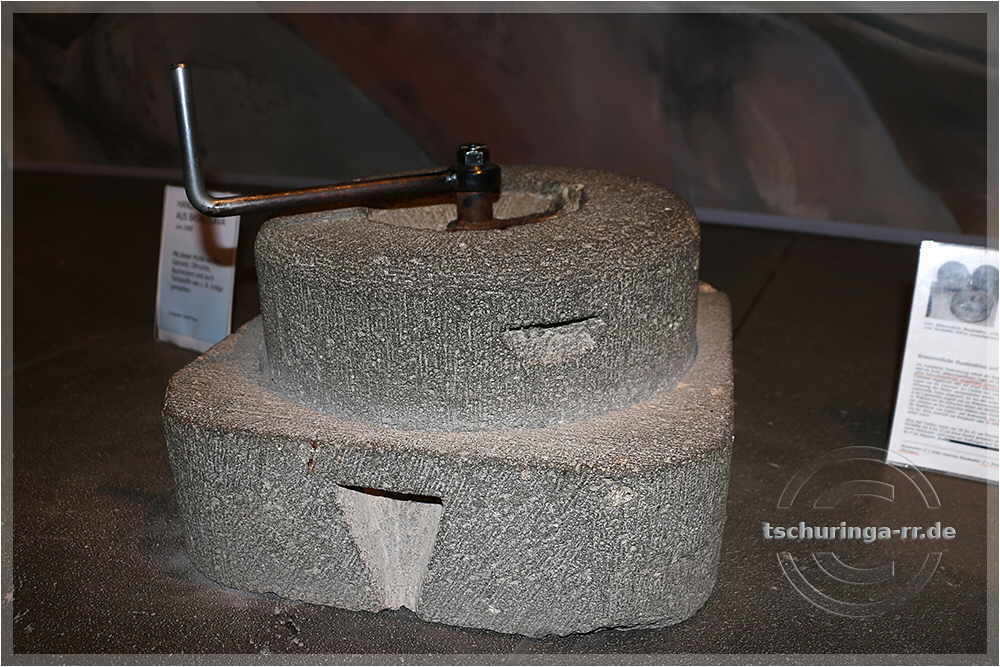 | Handmühle aus Basaltlava für Getreide, Bucheckern, Ölfrüchte, aber auch Farbstoffe wie Indigo | ||