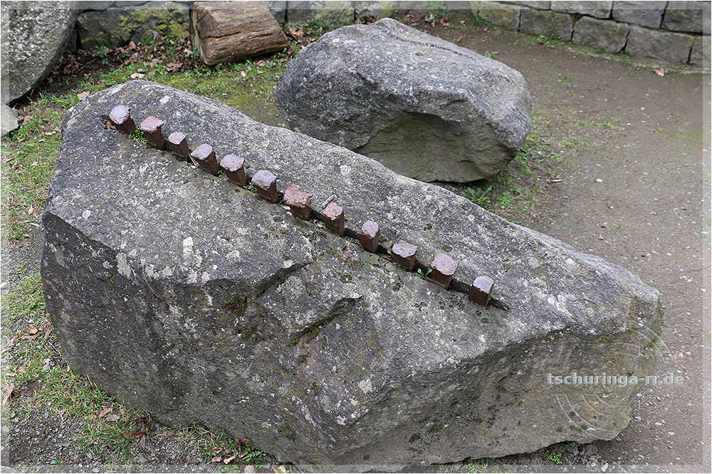 | Mit Keilen, die in den Basalt getrieben wurden, hat man große Stücke abbrechen können. | ||