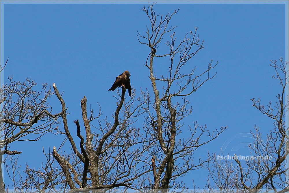 | Der Bursche da hoch oben auf seinem Ast putzt sich ausgiebig | ||