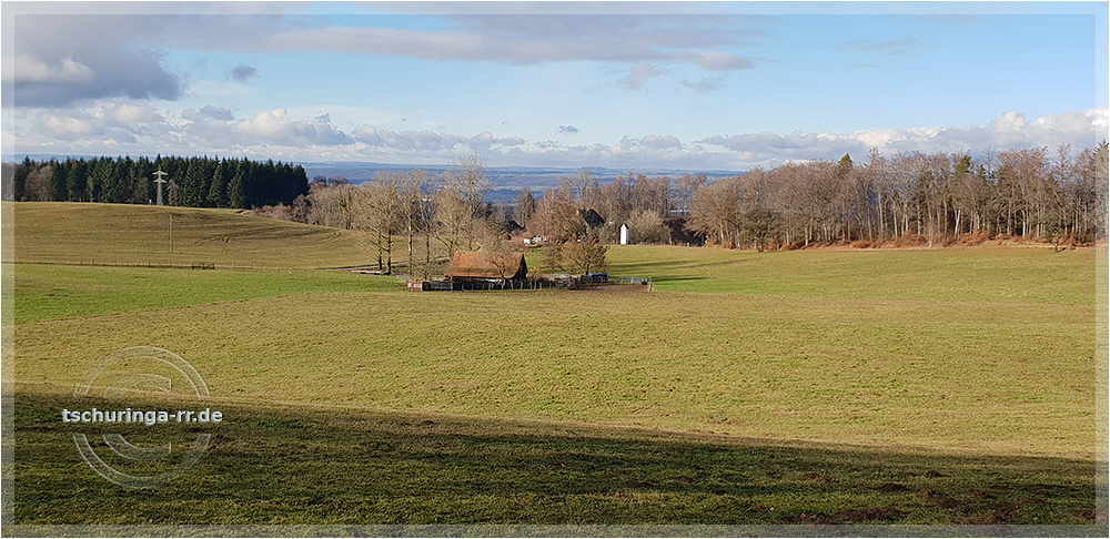 | Der Stall der Bisons von Hofgut Bodenwald | ||