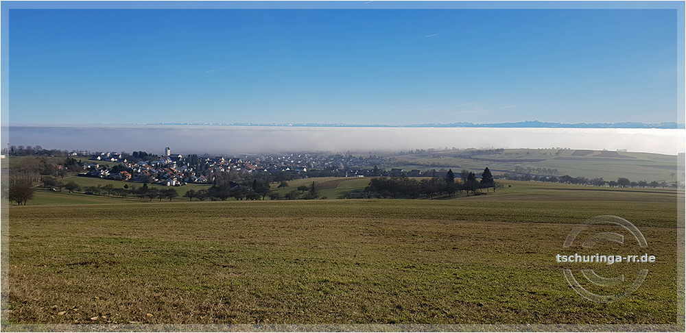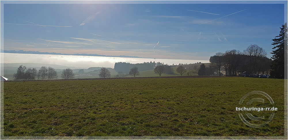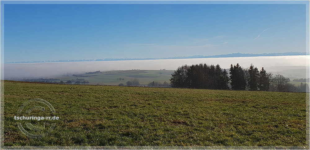 | Ausblick vom Witthoh über den Nebel auf die Alpen | ||