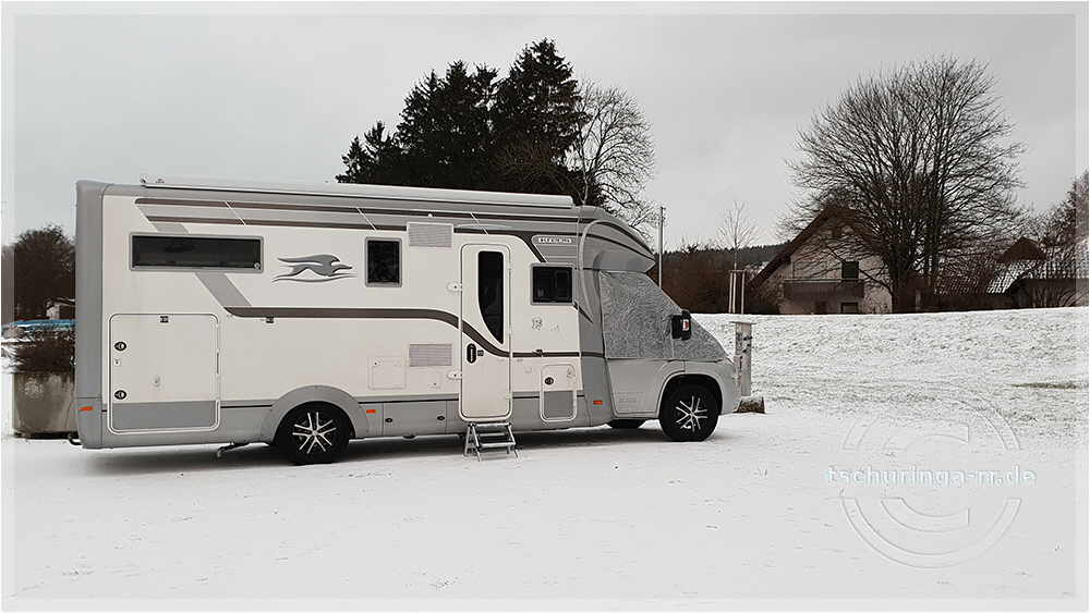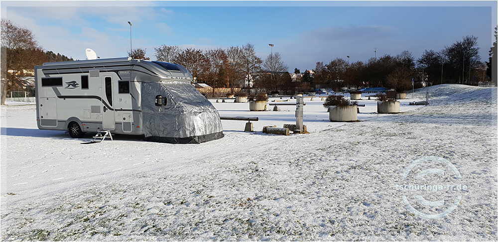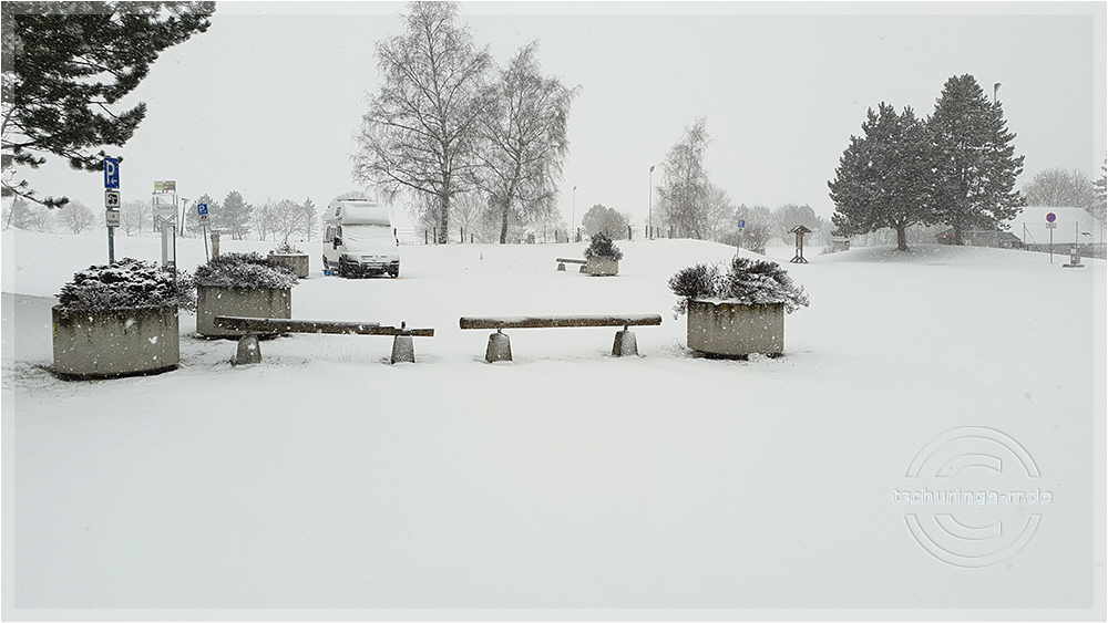 | Nach dem Nachtfoto heute doch mal ein sonniges Schneefoto vom Stellplatz Münsingen | ||