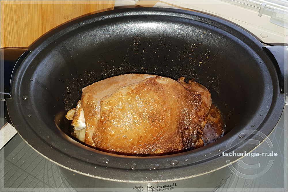 | Heute gibt es Putenkeule. Gestern hat er Sauerkraut mit Kassler zubereitet. | ||