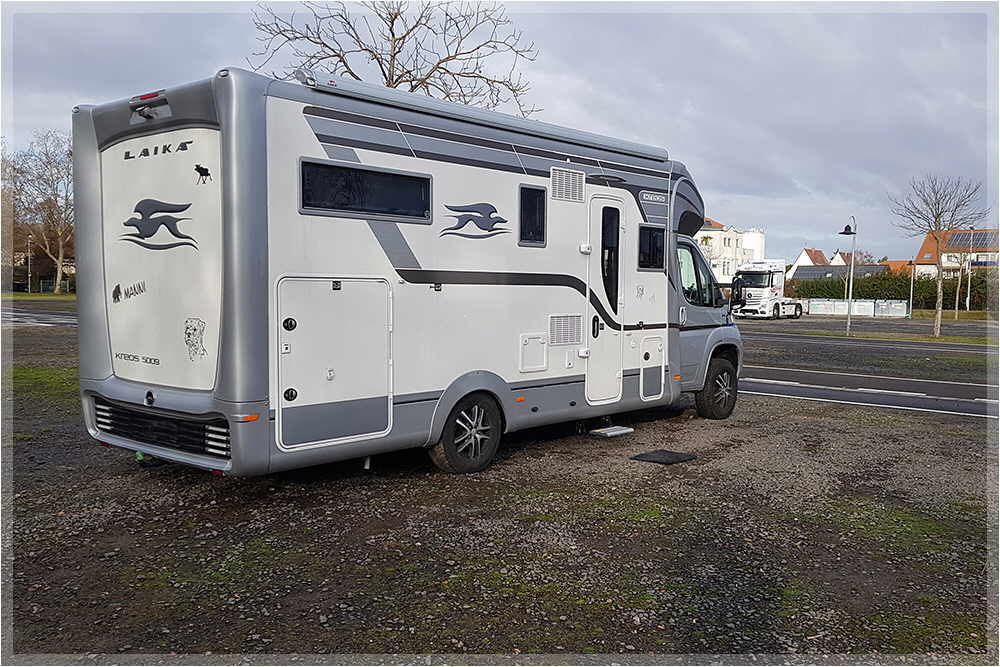 | Stellplatz Osthofen - Heute mal mit etwas blauem Himmel und ein ganz klein wenig Sonne. | ||