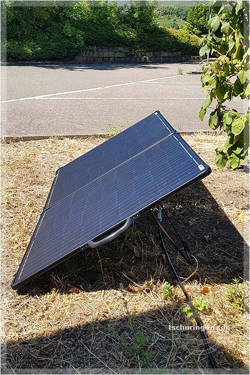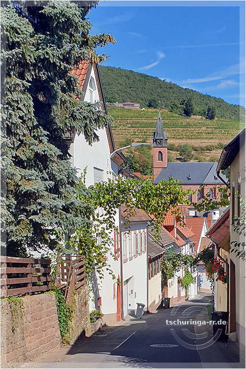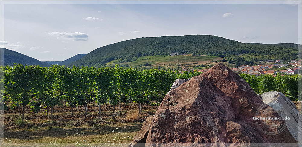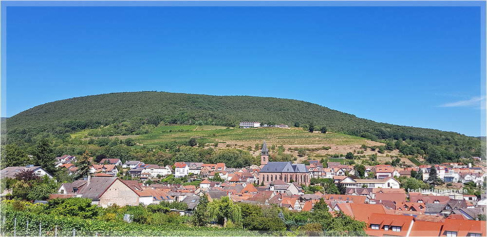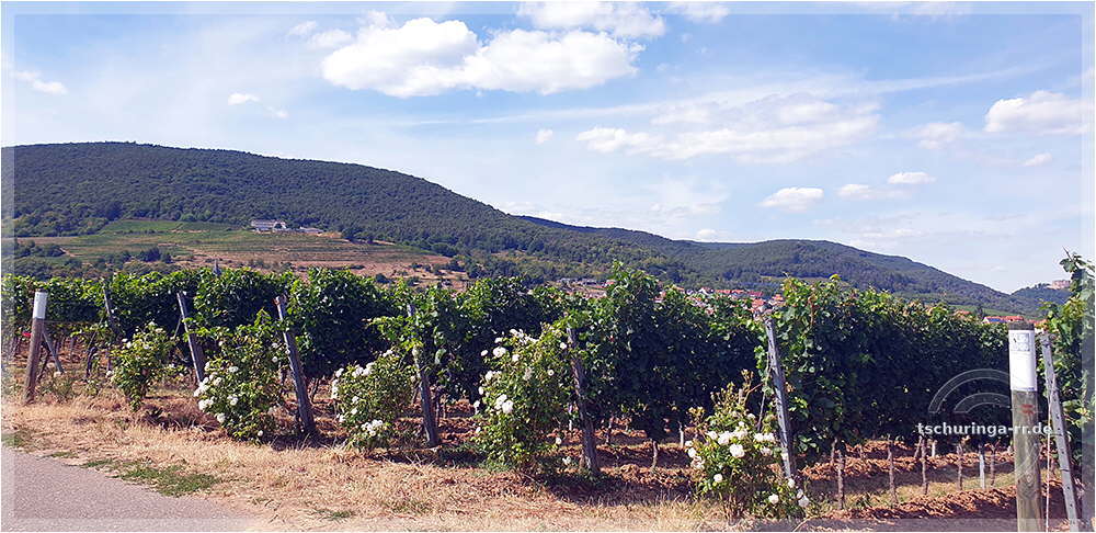 Zeitig geht es los. Das Ziel ist St. Martin am Pfälzerwald. Gegen 13:00 Uhr nehmen wir schon unseren Platz auf dem ausgewählten Stellplatz ein und stellen fest, dass es draußen kaum auszuhalten ist. Der Teer ist glühend heiß und Schatten ist auch nicht wirklich in Sicht. So öffnen wir denn alle Fenster und Luken und lassen die beiden Ventilatoren voll laufen. So geht zumindest etwas Luft durch's Wohnmobil. Nachmittags sind draußen 32° und drinnen 29° und für Donnerstag sind Außentemperaturen von 39° vorhergesagt. Die Unternehmungen halten sich wegen der Hitze in Grenzen. Wir machen jeder einen kurzen Gassigang mit einem Hund in den gegenüber liegenden Weinberg. Das getrennte Laufen hat den Vorteil, dass wir das Wohnmobil nicht verschließen müssen und es weiter belüftet werden kann. Nach dem Abendessen geht es noch eine kleine Runde Richtung Weinberge oder besser Felder, denn wirklich Berge sind das nicht. Die Sonne ist jetzt weg und es ist einigermaßen angenehm. |