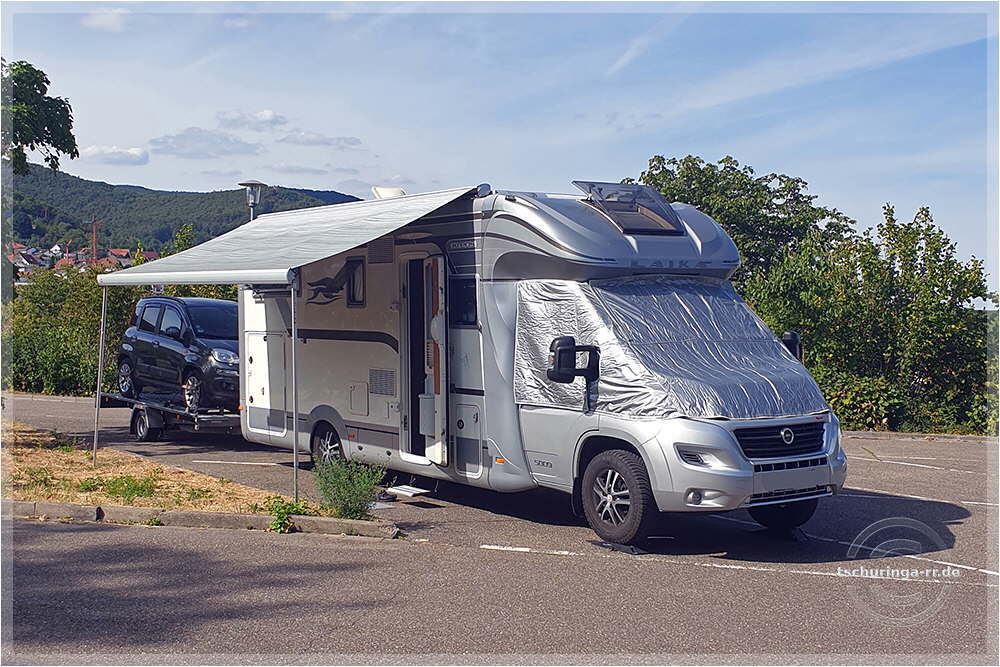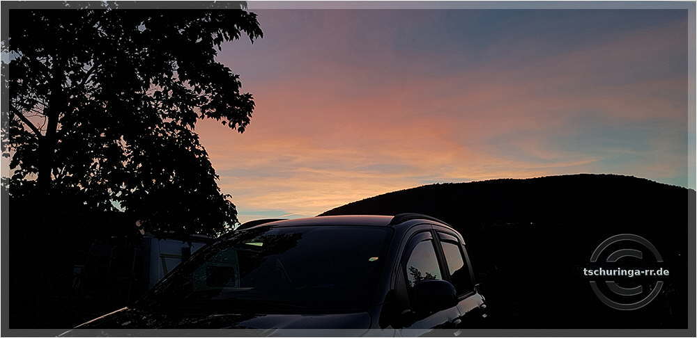 Wieder sind wieder "on Tour". Heute Morgen war das Wohnmobil noch zum TÜV, Gas- und Dichtigkeitsprüfung standen auch an. Alles gut gelaufen. Plakette noch mal für zwei Jahre und wir können starten. Da es nach den letzten Vorbereitungen schon nach 17:00 Uhr ist, entscheiden wir uns wieder auf dem Stellplatz in Morsbach zu übernachten. So sind wir morgen früh gleich startklar. Friedbert fährt das Wohnmobil mit Anhänger nach Morsbach und ich den Panda, der dann dort direkt auf den Trailer geladen wird. Anschließend genießen wir bei einem kurzen Spaziergang noch die angenehme Luft an der Wisser. Heute Abend kühlt es dann doch etwas ab, was zum Schlafen schon sehr angenehm ist. |