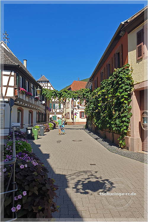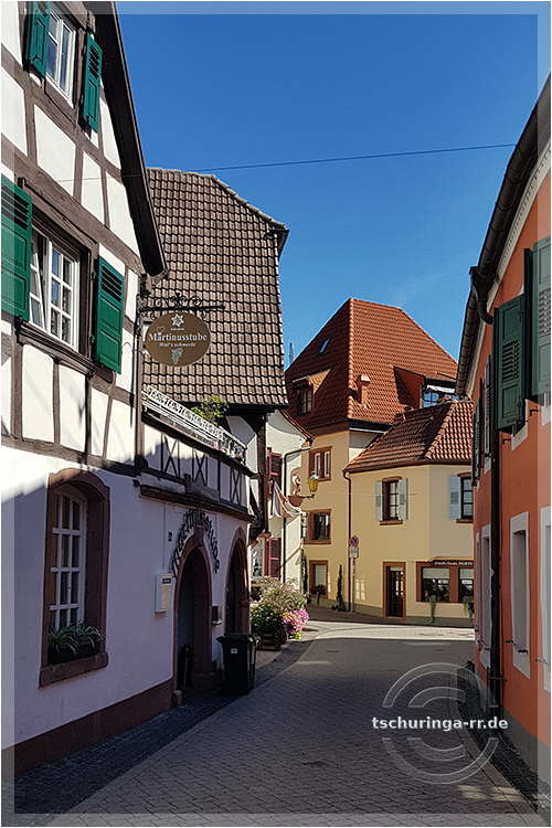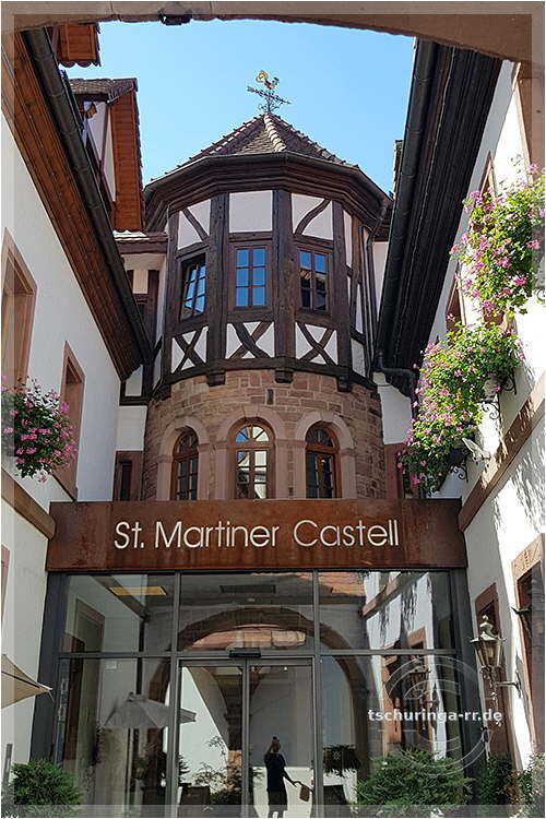 Heute ist es noch wärmer als gestern. Die Innentemperatur liegt im Wohnmobil bei über 30° und das, obwohl die Ventilatoren laufen und alle Löcher auf sind und die Markise die Beifahrerseite schattig hält. Morgens laufen wir zum Sightseeing nach St. Martin. Hin- und Rückweg an den Weinfeldern vorbei, damit die Hunde auch etwas davon haben. Im Ort geht es aber recht gut mit der Hitze, weil man fast immer im Schatten der Häuser unterwegs sein kann. Wir bummeln eine Weile durch den hübschen Ort. Nach der Rückkehr sind wir hitzebdingt erst mal ordentlich faul. |