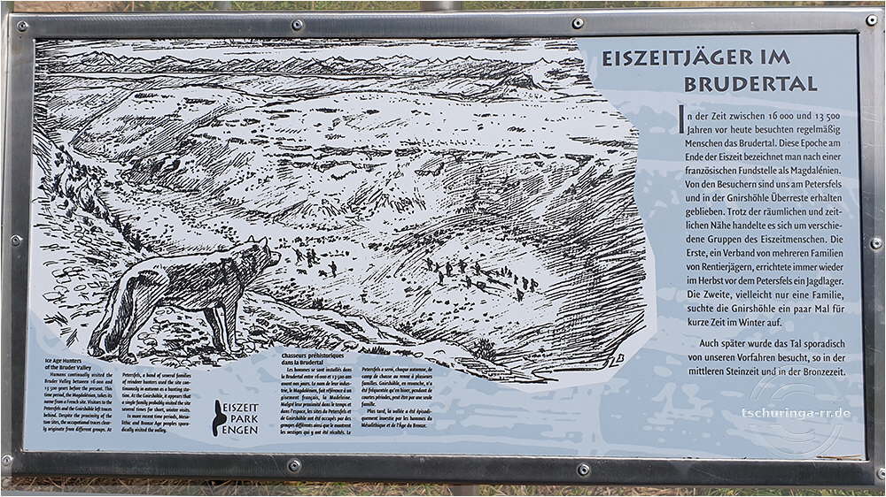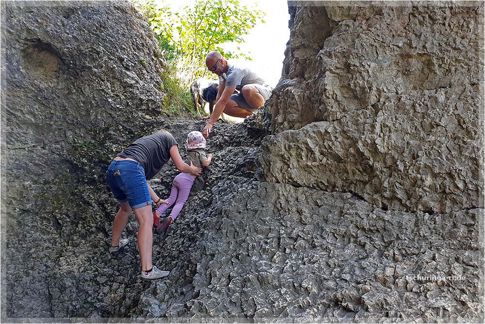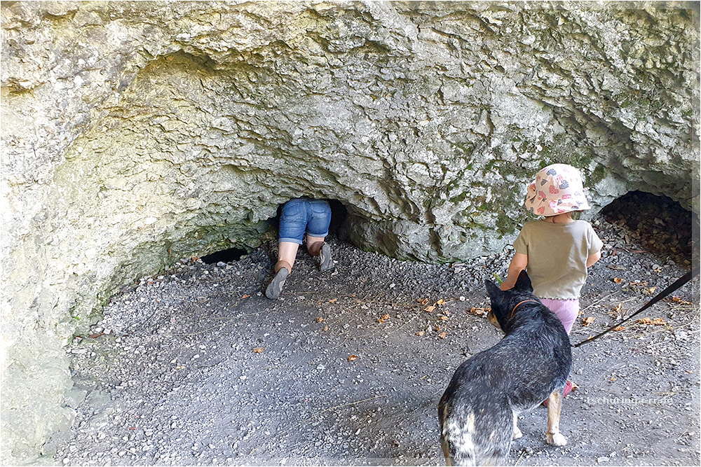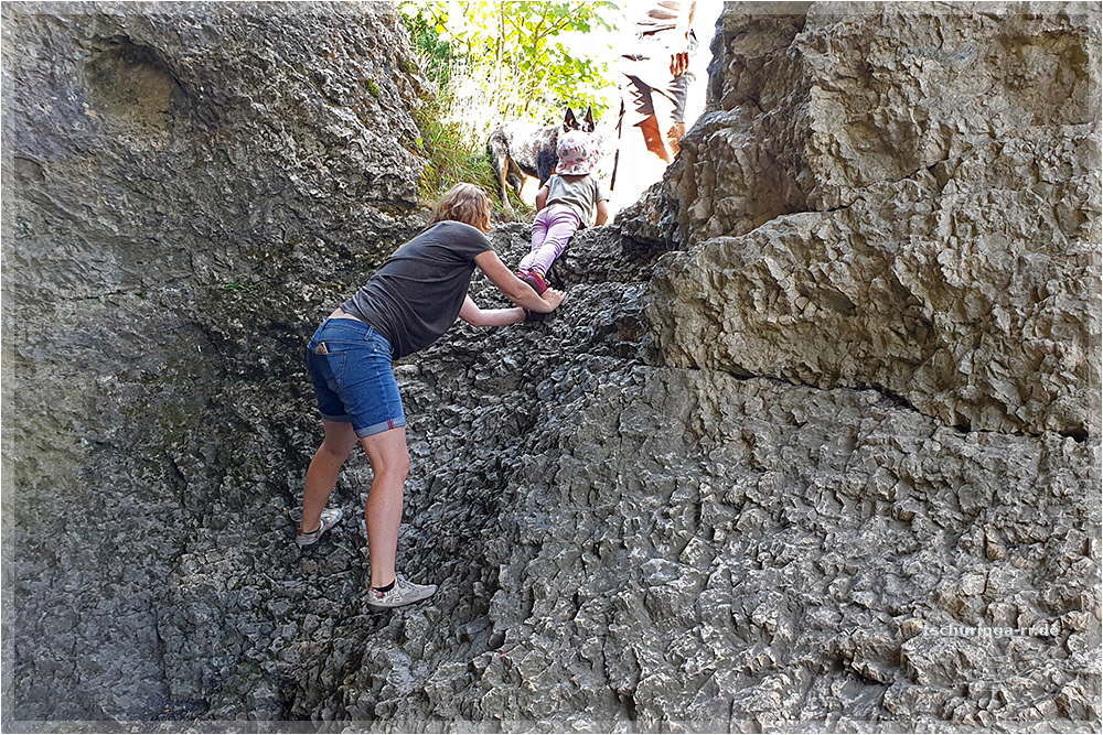 Nach dem Frühstück fahren wir mit unseren Kindern und Enkeln zum Eiszeitpfad im Brudertal bei Engen. Am Petersfels wird die Höhle erkundet und wir wandeln auf den Spuren der Eiszeitjäger. Zum Schluss geht der Rundweg ziemlich steil hoch und endet mit einem tollen Ausblick über das Tal, dass vor vielen Jahrtausenden von Eiszeitjägern, Rentieren, Wölfen und anderem bewohnt wurde. Auf dem Rückweg halten wir noch bei McDonald und gönnen uns ein schönes Eis. Zum Abendessen gibt es Bratwürstchen und "Kullersalat". |