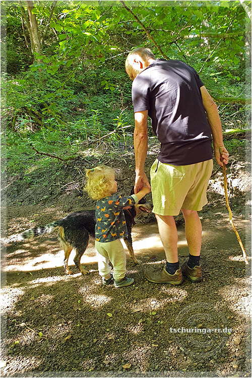 | Der Krebsbach führt noch Wasser. Füße bzw. Pfoten kühlen ist angesagt. | ||
