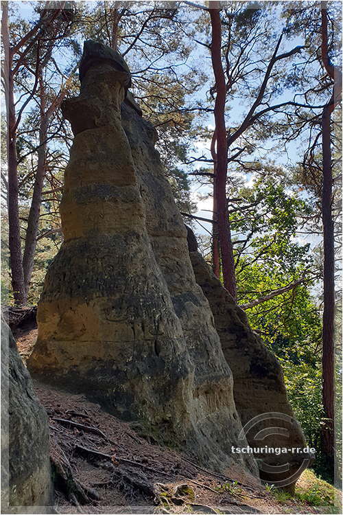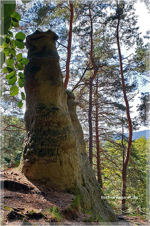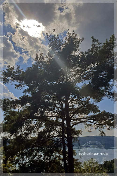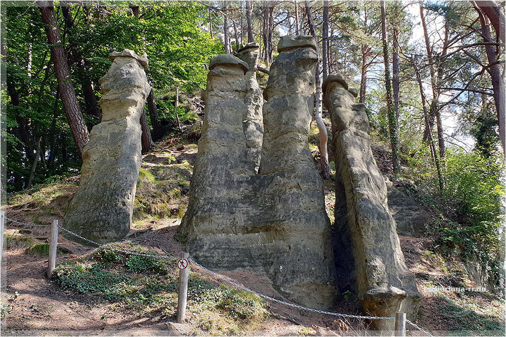 Heute besteigen die "Himmelsleiter" beim Walderlebnispfad Kirnberg. Wir laufen eine schöne Runde von knapp vier Kilometern, die für mich dann doch noch unerwartet länger wird, weil ich den Wohnmobilschlüssel bei der Pipipause vergessen habe und so muss ich noch mal gut einen Kilometer wieder zurück, um den zu holen. Glücklicherweise liegt er noch genau dort, wo ich ihn hingelegt hab. Puh, noch mal gut gegangen. |