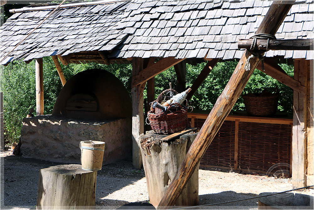 Nachdem Friedbert die Morgenrunde mit Millaa beendet hat, fahren wir nach Messkirch zum Campus Galli, den wir 2014 und 2017 schon mal besucht haben. Wie auch die beiden Male vorher gibt es viel zu sehen und auch einiges Neues, das in den vergangenen Jahren entstanden ist. Wir laufen etwa fünf Stunden über das Gelände und schauen uns ausgiebig um. Es gibt viel zu sehen, zu hören. Mittagspause machen wir auf dem Marktplatz und essen Dinnele, schwäbischen Flammkuchen mit Speck und Käse. |