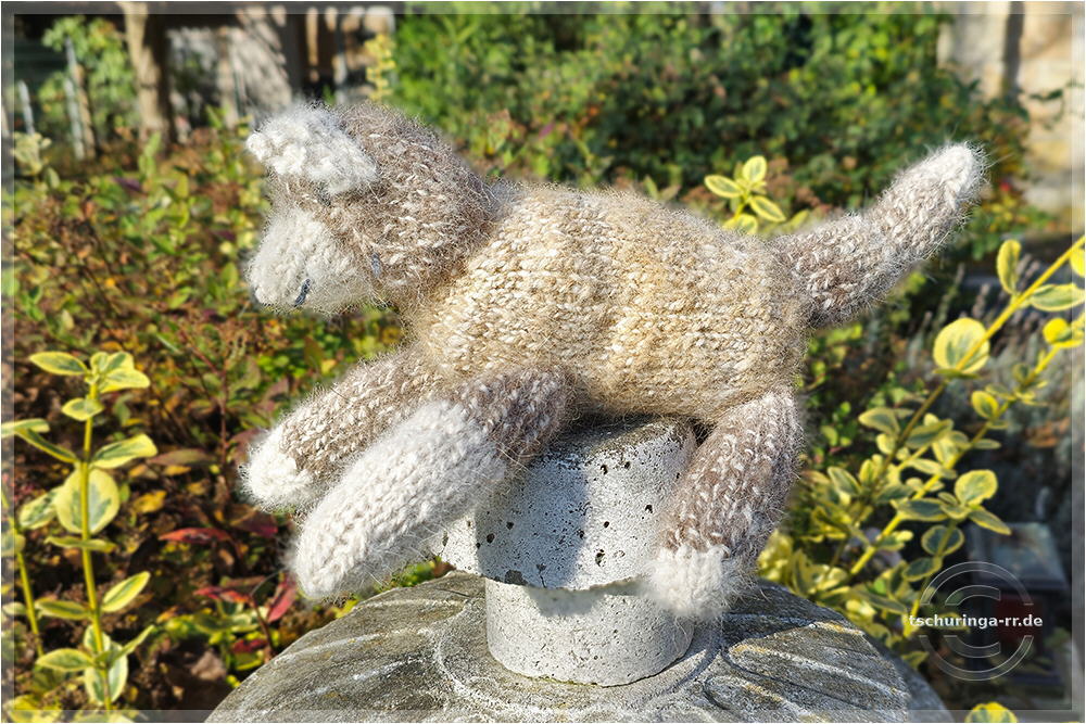 Strick-Akita Aus dem Fell von Christianes verstorbenen Hunden gefertigt |