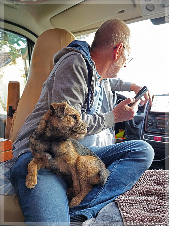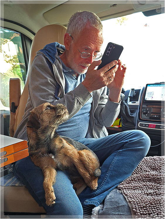 Wir sind endlich wieder "on Tour". Nach vier Monaten in Katzenbach sind wir froh, dass das Wohnmobil endlich wieder startklar ist und wir die Straße unter die Reifen nehmen können. Leider ohne Yukon, den wir vor gut sechs Wochen gehen lassen mussten. Heute sind wir nach Soest gefahren, wo Friedbert nach dem Mittagessen das Winterdach unseres Rapidos, das wir über Kleinanzeigen verkauft haben, seinem neuen Besitzer übergibt. Das Dach haben wir auf dem Trailer transportiert, den wir hinter dem Panda hängen hatten. So konnten wir wenigstens 80 km/h fahren. Das Womo mit Anhänger darf auf der Landstraße nur 60 km/h. Ich fahre nicht mit um das Dach abzuliefern, sondern laufe mit den Hunden 2,5 km entlang der alten Stadtmauer und natürlich auch wieder zurück. Bei schönem Sonnenschein ist am Sonntag viel Volk unterwegs und gefühlt noch mehr Hunde. Una benimmt sich mustergültig und macht nicht einmal Theater. Die 100 € für die Hundeschule sind gut investiert. |