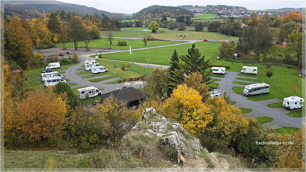 | Blick vom "Scharfen Stein" auf den Stellplatz Volkmarsen | ||