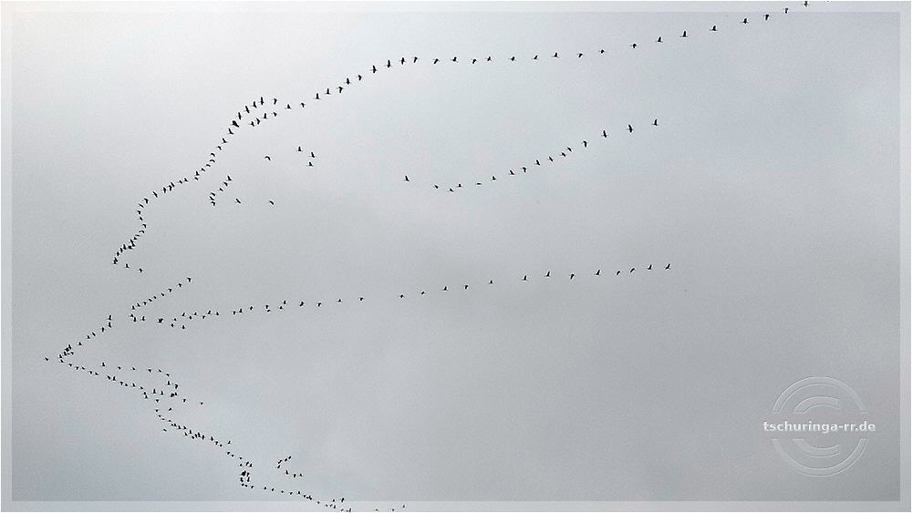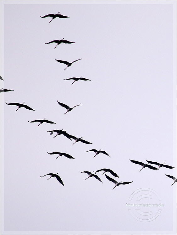 Heute haben wir etliche Trupps gesehen. Diese hier flogen direkt über den Stellplatz. |
