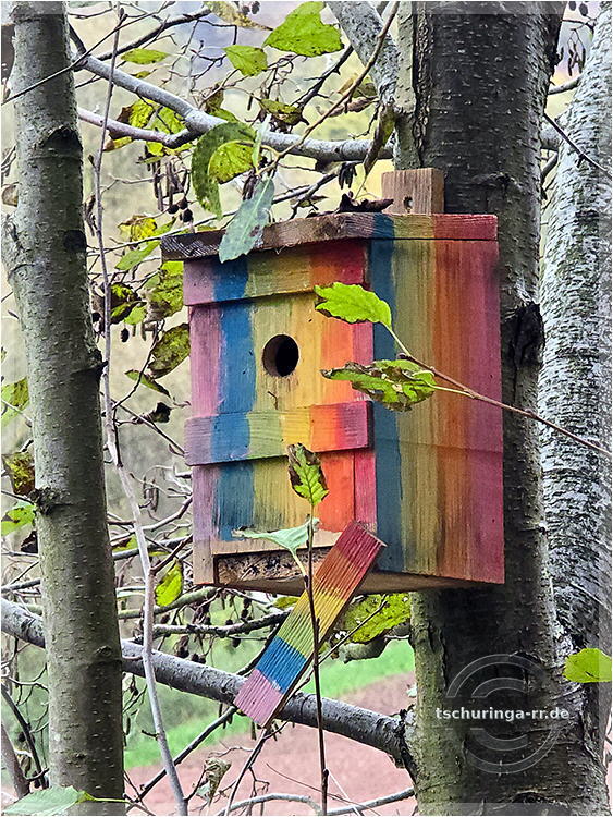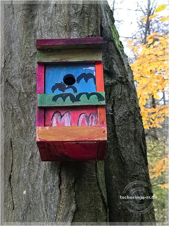 | Eine ganze Menge hübscher Nistkästen gibt es hier. | ||