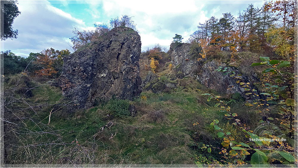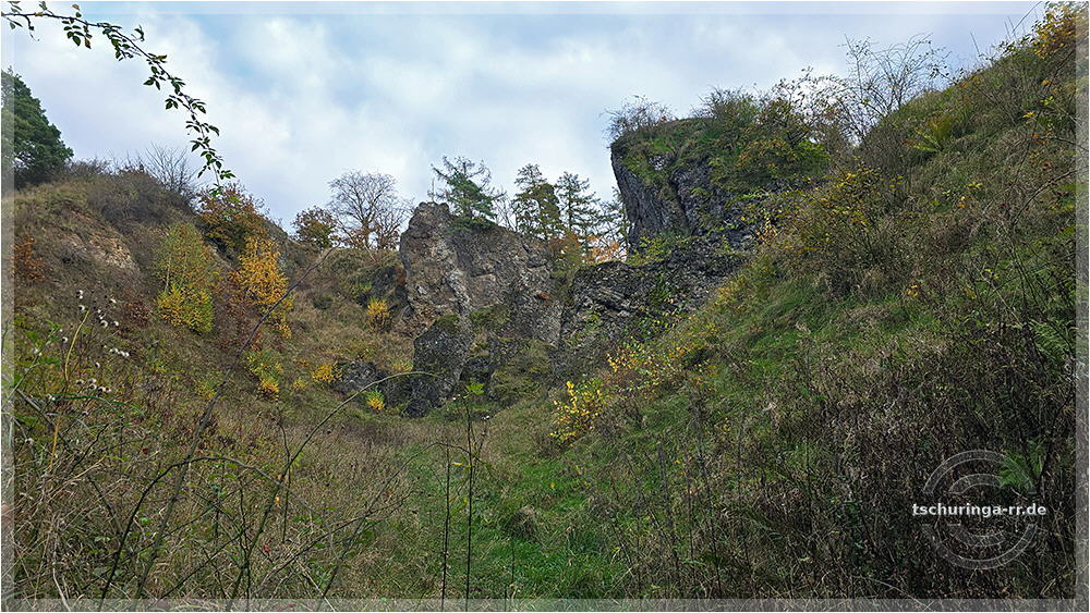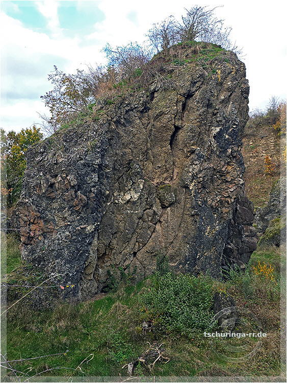 Die Sonne ist nicht wirklich da, aber es regnet nicht. Ist ja auch schon mal was. Nach dem Frühstück laufen wir 3,5 km vom Stellplatz aus. Dann geht es kurz zum Aldi und nach dem mittäglichen Käsekuchen fahren wir wieder 2,5 km um dann 6 km zu wandern. Der Weg führt uns an der "Blauen Kuppe" vorbei. Das sind einige Felsen, die eine blaugraue Farbe haben. Leider kommen wir nicht an die Felsen ran, weil alles wegen Steinschlags gesperrt ist. Una hat bestimmt insgesamt 12 km oder mehr zurück gelegt. Die Maus flitzt immer hin und her und vor und zurück. Das macht ordentlich zusätzliche Strecke. |