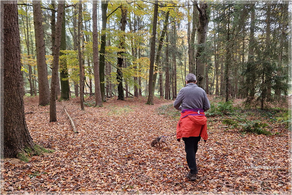 Heute Vormittag laufen ich mit Lennox und Una zweieinhalb Kilometer ab Wohnmobil. Nach Mittag fahren wir nach Heiligenloh und wandern dort ein Stück auf einem der 20 Rundwanderwege "Wilde Geest zu Fuß". Die Beschilderung lässt allerdings zu wünschen übrig und wir laufen unsere Eigenkreation in der Geest. |