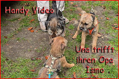 Am Vormittag laufen wir mit den Hunden etwas dreieinhalb Kilometer mit den Hunden. Nach Mittag gehe ich rüber zu Beate. Wir wollen heute mal gemeinsam mit ihren beiden Rüden Ismo, Unas Opa, und Jungspund Zorro laufen. Wir fahren in die Töpsheide, wo wir gut sechs Kilometer abtraben. Una ist völlig aus dem Häuschen, als sie Ismo wieder sieht. Es sind nur Sekunden, bis sie ihn wieder erkennt und völlig am Rad dreht. SOFORT beginnt sie mit der Küsserei, die sie auch schon gezeigt hat, als sie hier noch zu Hause war. Am Nachmittag besuchen wir wieder die Welpen und kuscheln lange mit unserer kleinen Tay. |