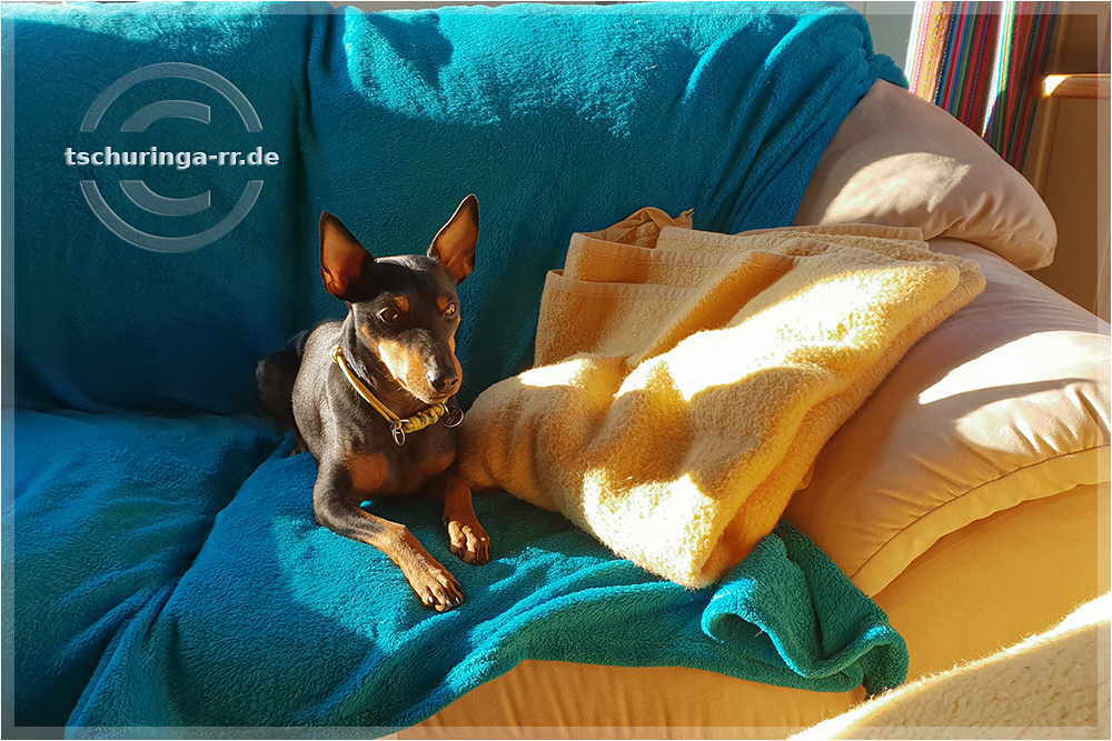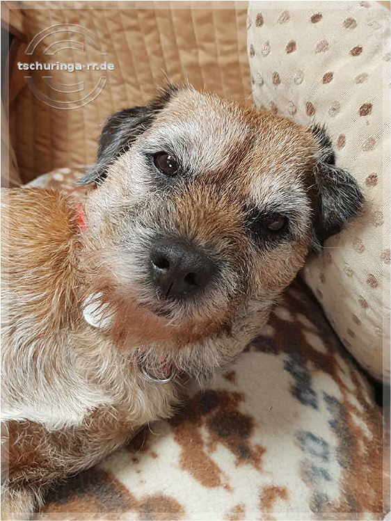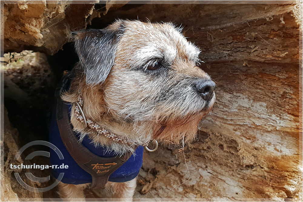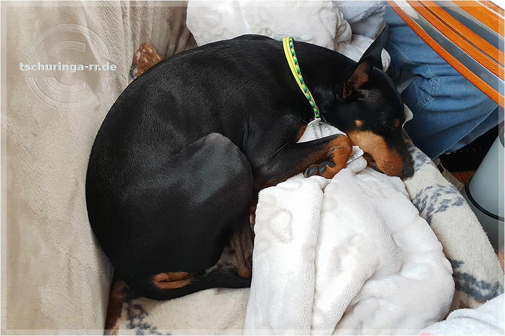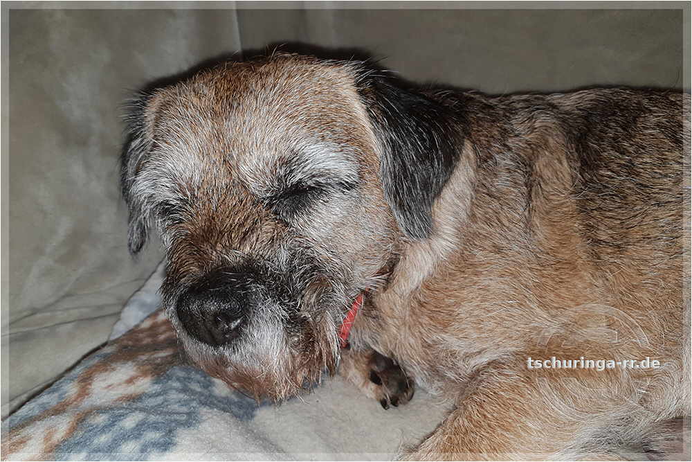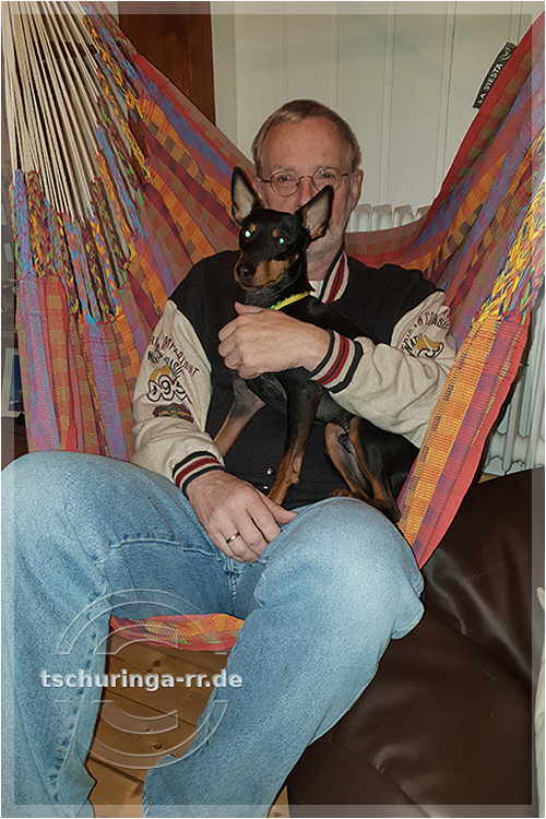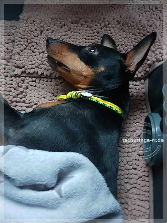 | Oh, meno, keine Fotos. Das grüne Auge war doch ein Versehen. | Lennox genießt nach der Wanderung die Ruhe bei Herrchen | ||