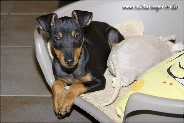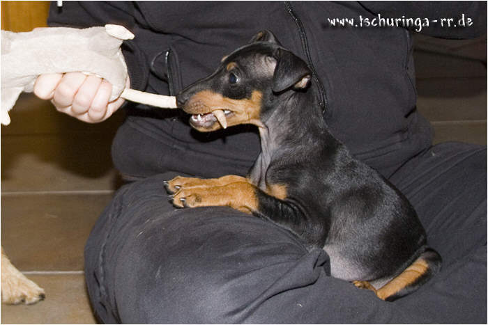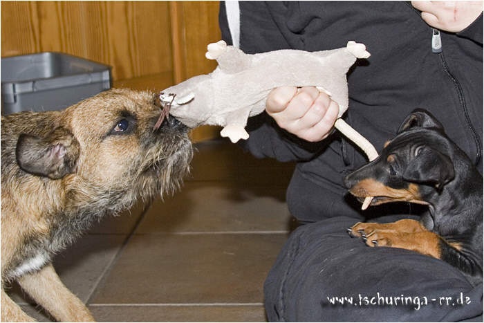 gern auf sein Spielzeug. Das quiescht so schön, wenn man sich drauf