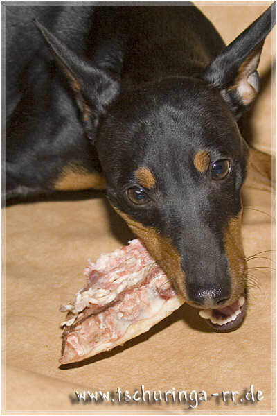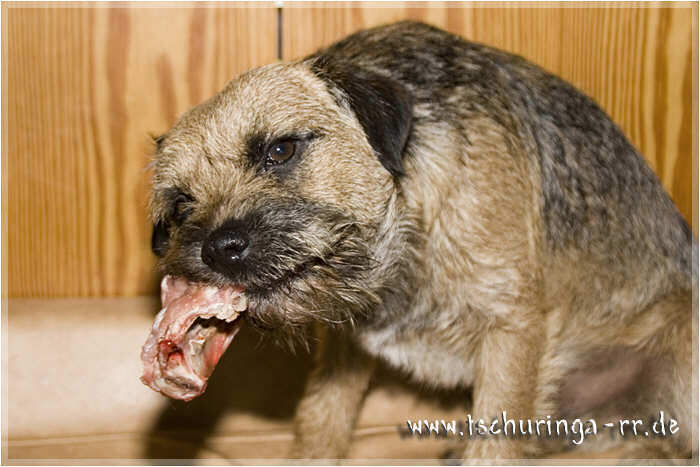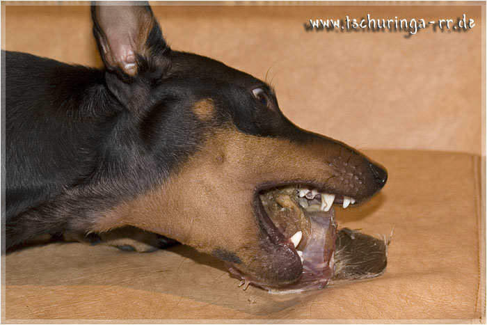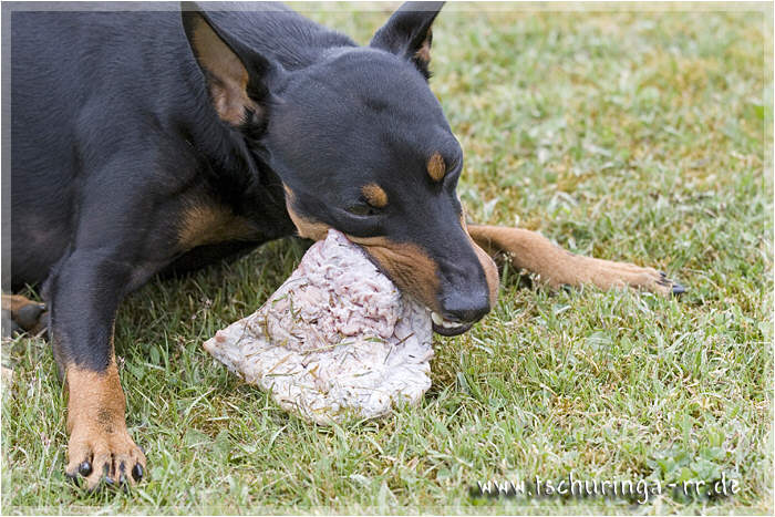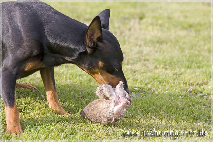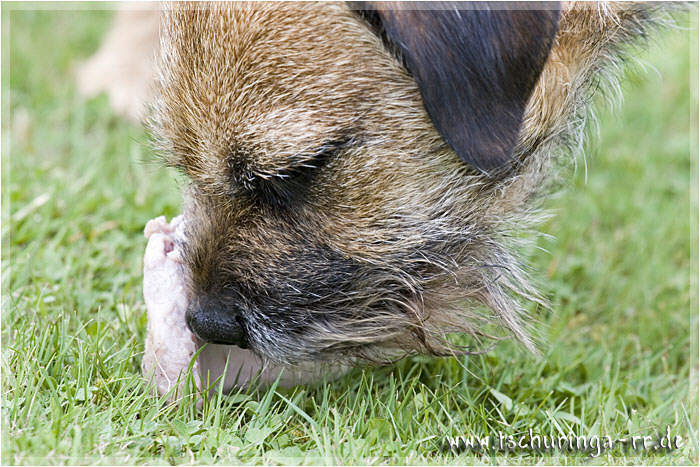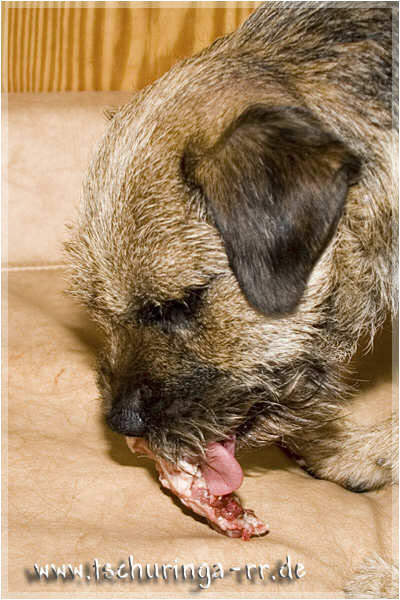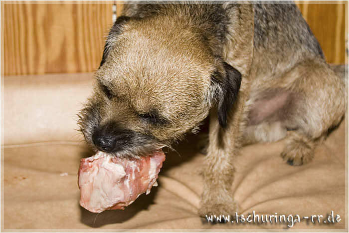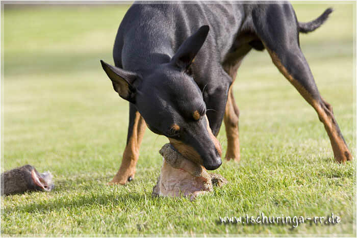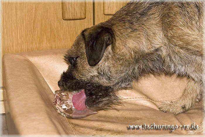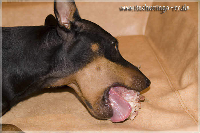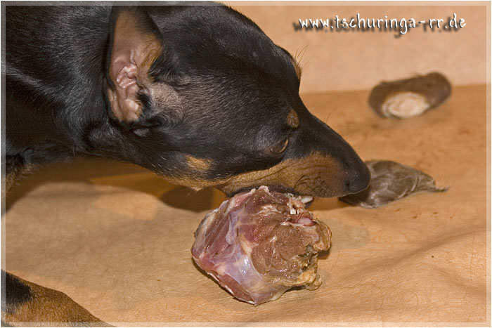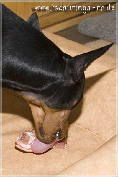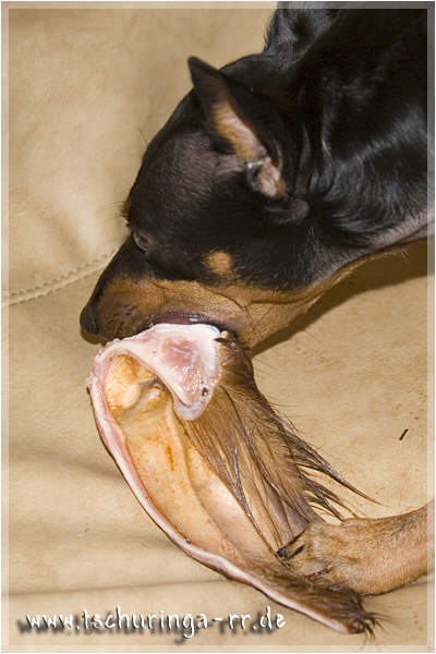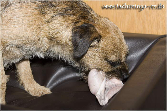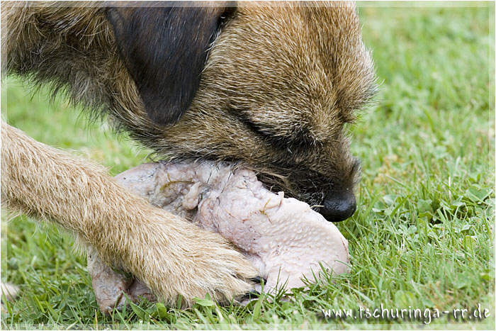 der Pfote wird der Pansen festgehalten, damit man richtig reißen