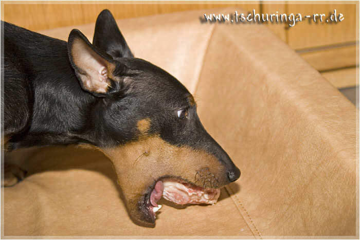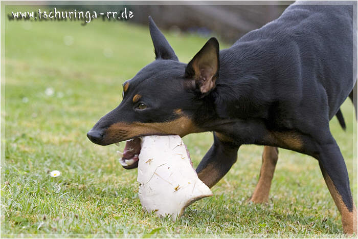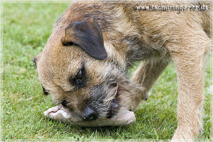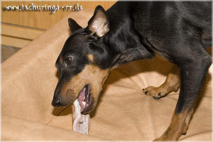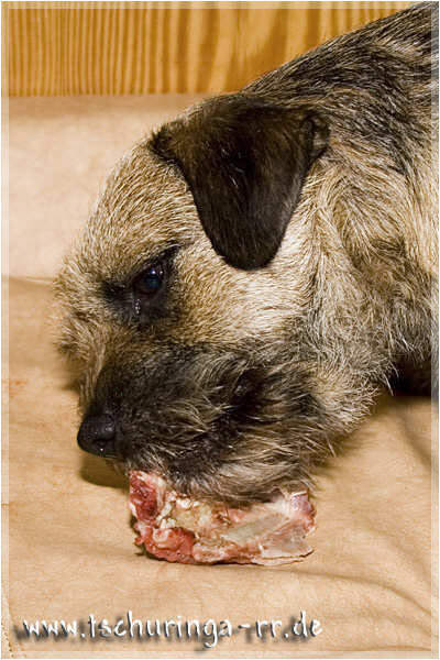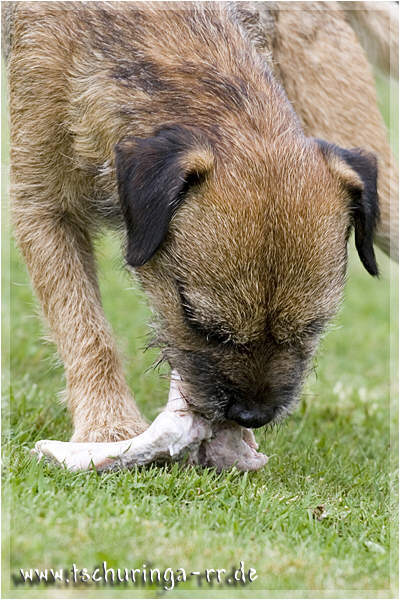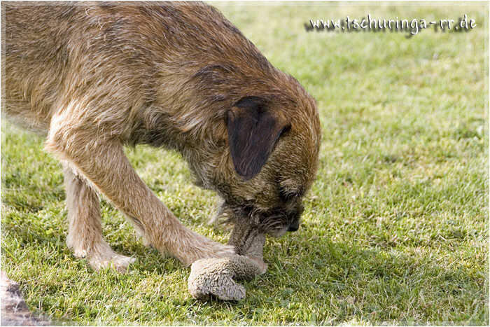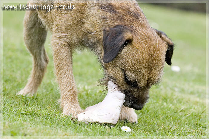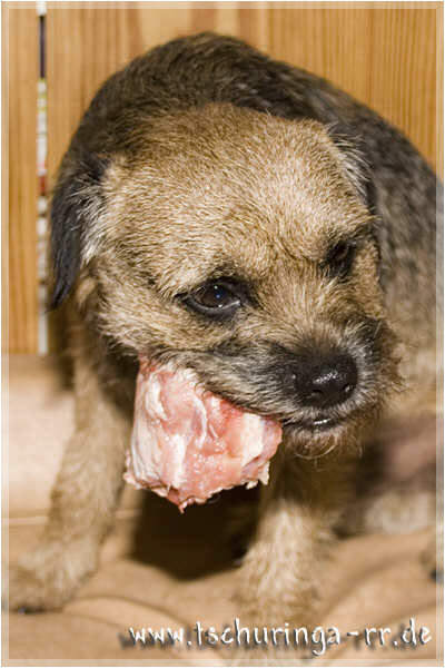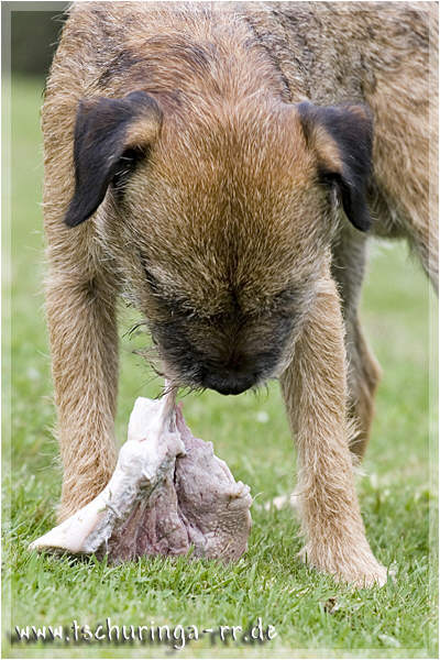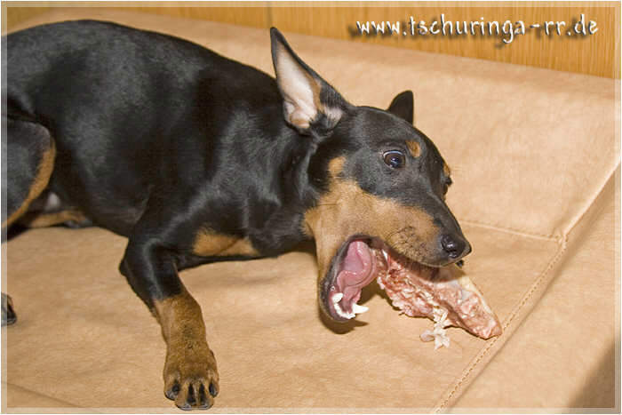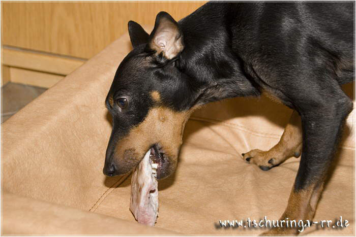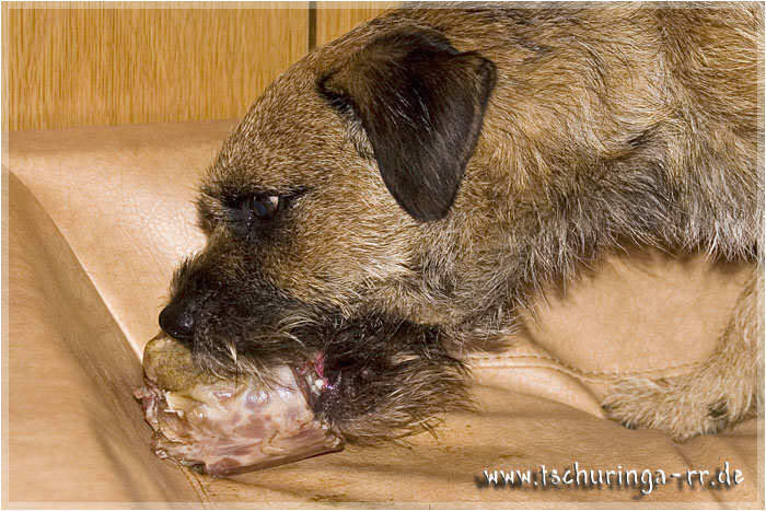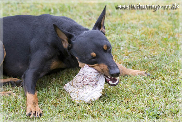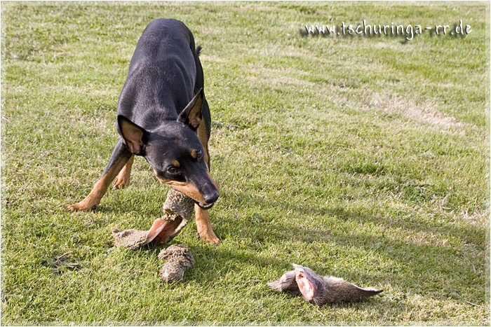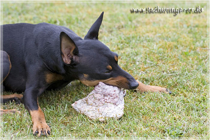der Pfote wird der Pansen festgehalten, damit man richtig reißen