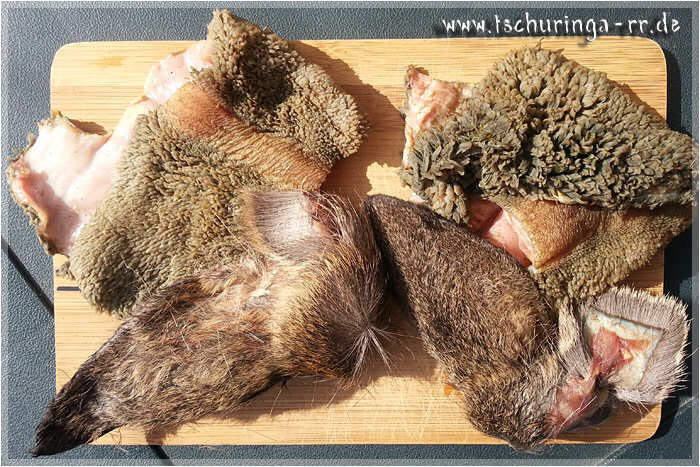 Abend gibt es Rinderkopfhaut. Die großen Lappen sind ganz schön