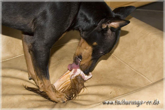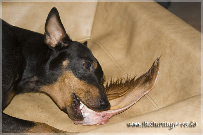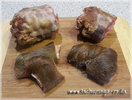 Abend gibt es Putenhals und Hautabschnitte vom Rinderbein mit Sehnen