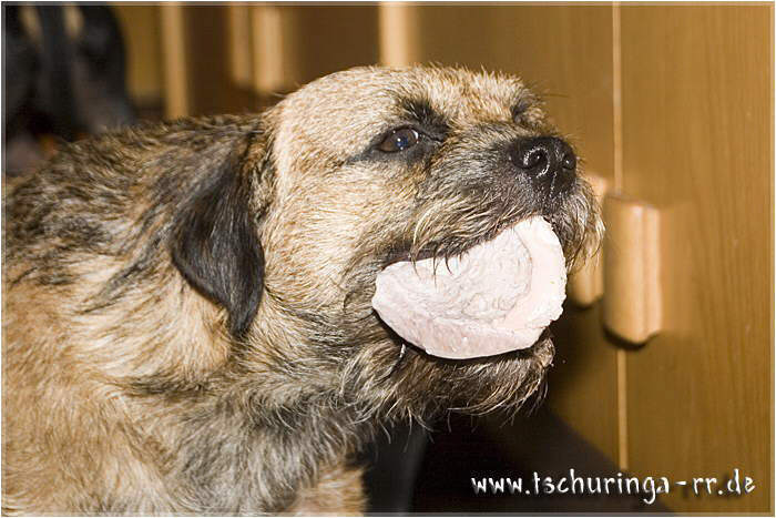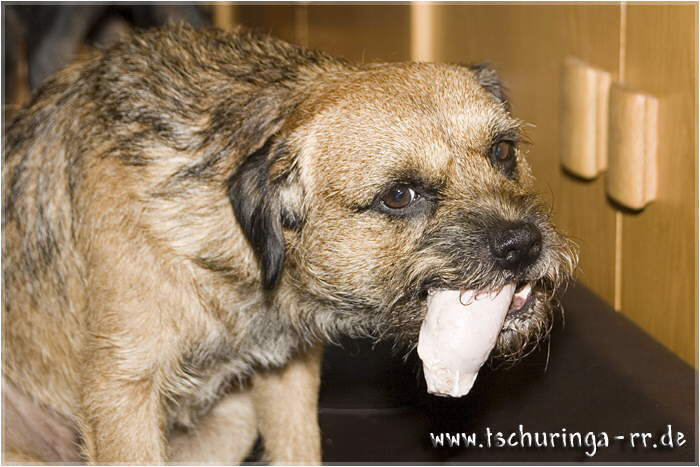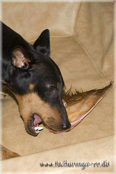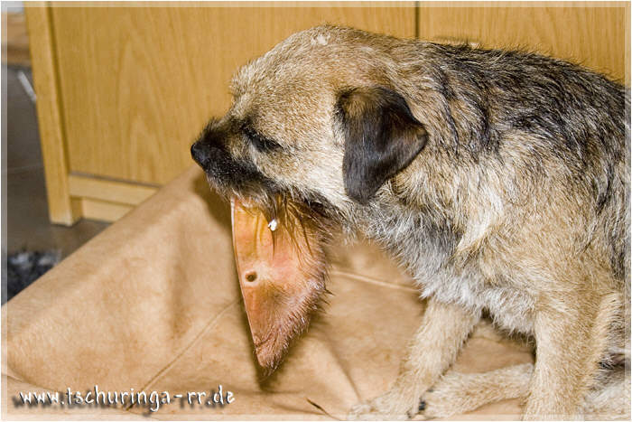 jeden ein halbes Rinderohr mit richtig schön viel Fell dran. |