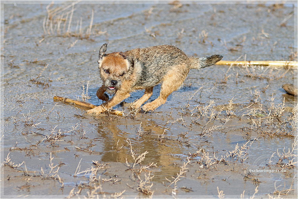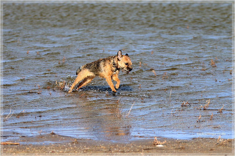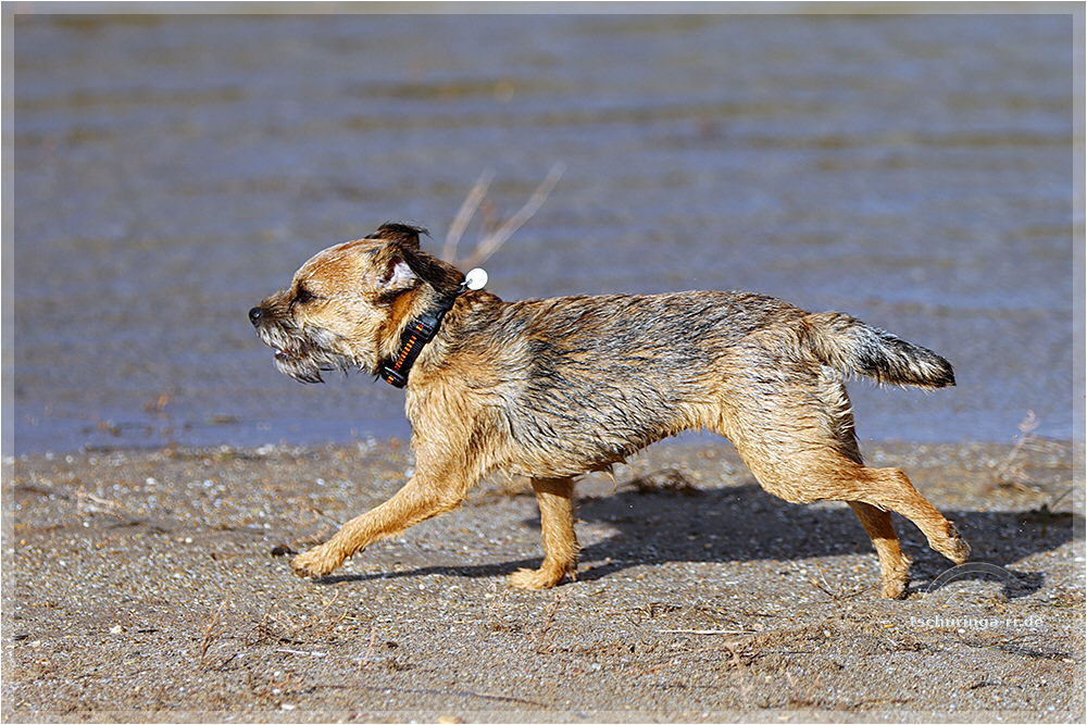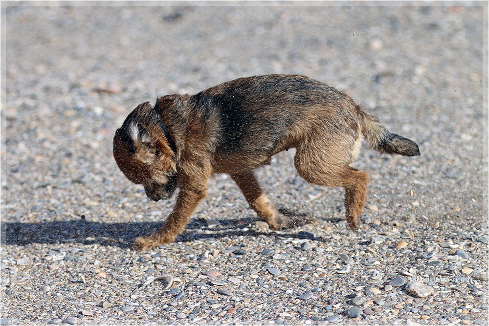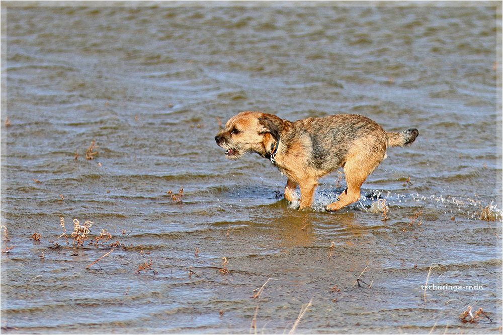 Inzwischen ist Una auf der Jagd nach Möwen ordentlich nass geworden.