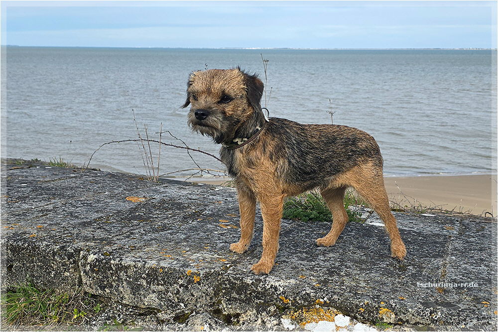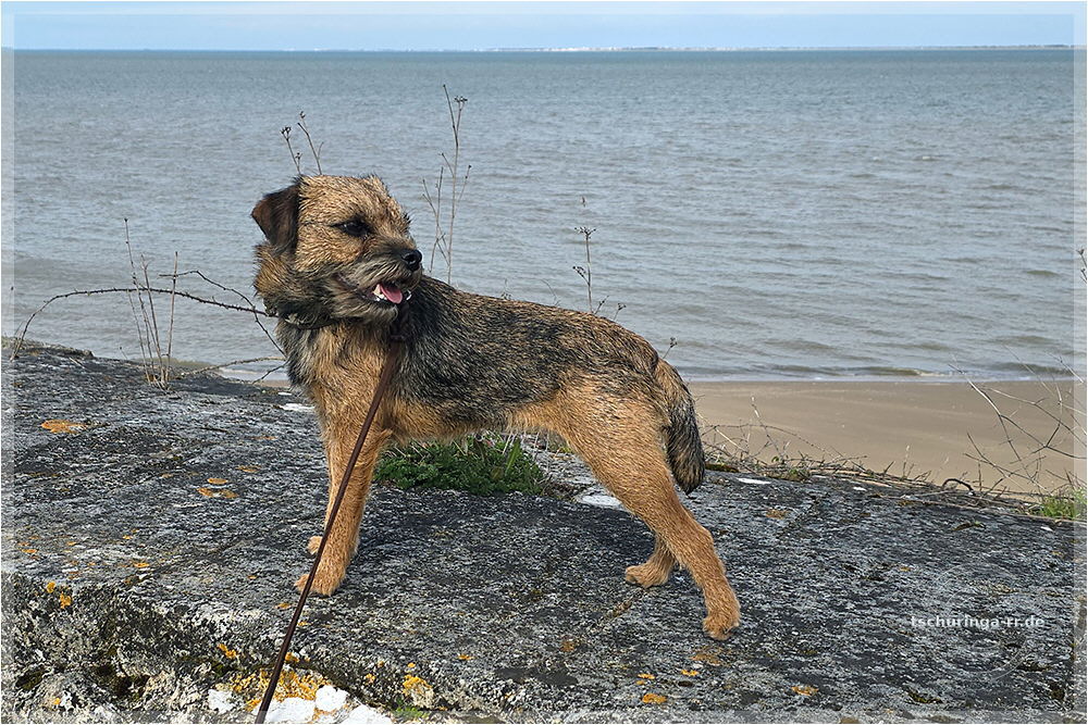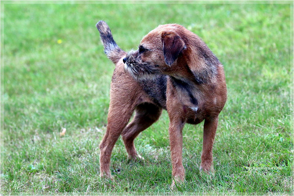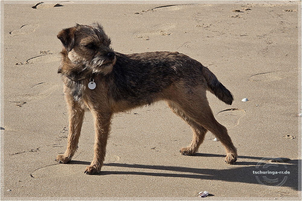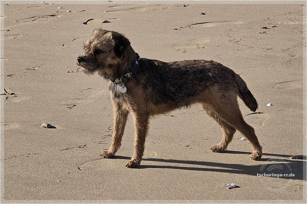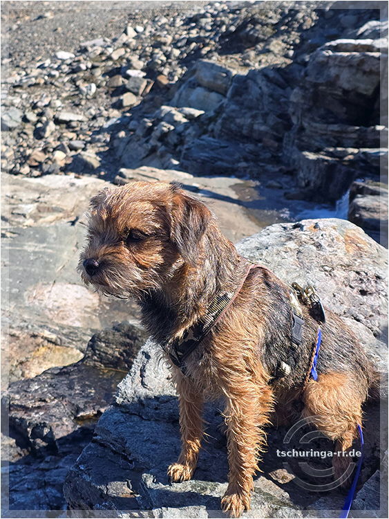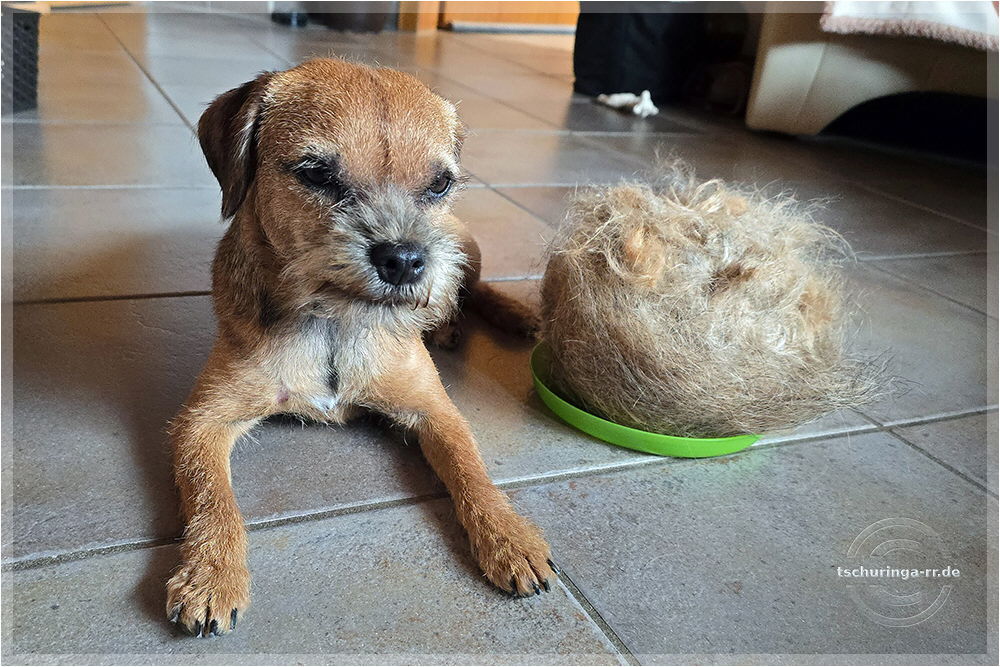 Er läuft inzwischen wieder recht gut mit. Schuhe braucht er aber noch, weil er sich sonst die Pfoten aufscheuert, denn er schleift noch ordentlich damit über den Boden. |